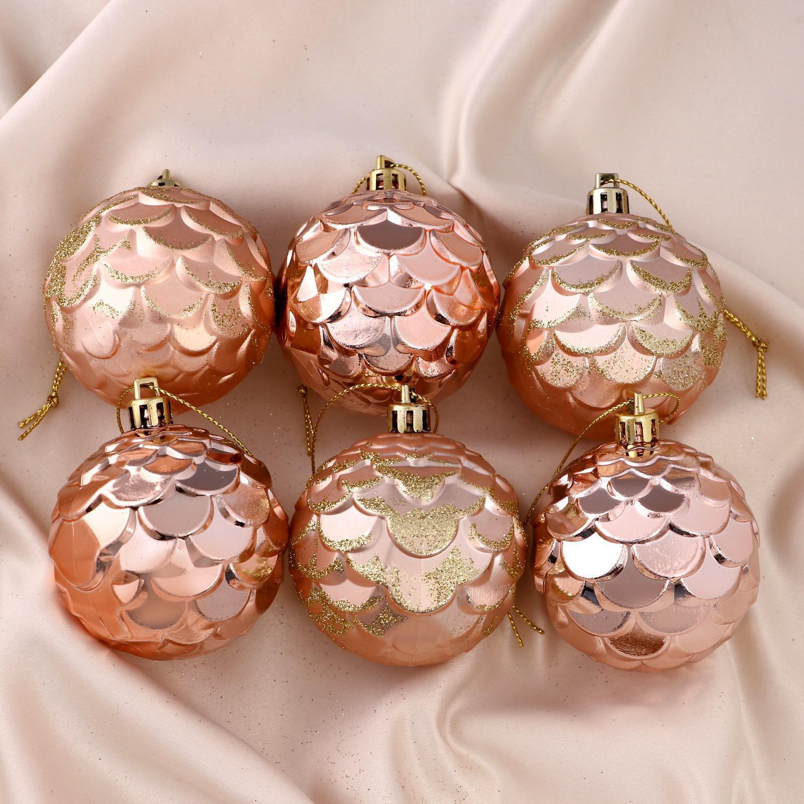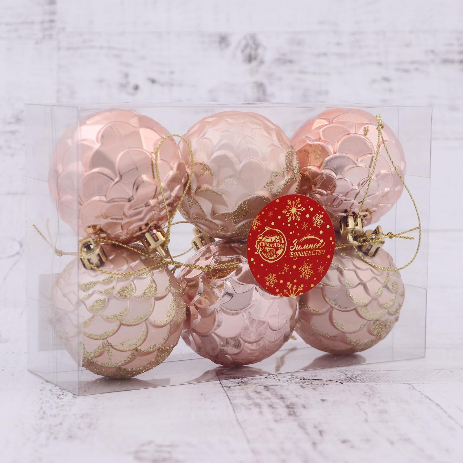 !09 Набор елочных шаров (набор 6 штук) "Шишечки" пластик d-6 см. цвет золотой