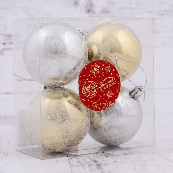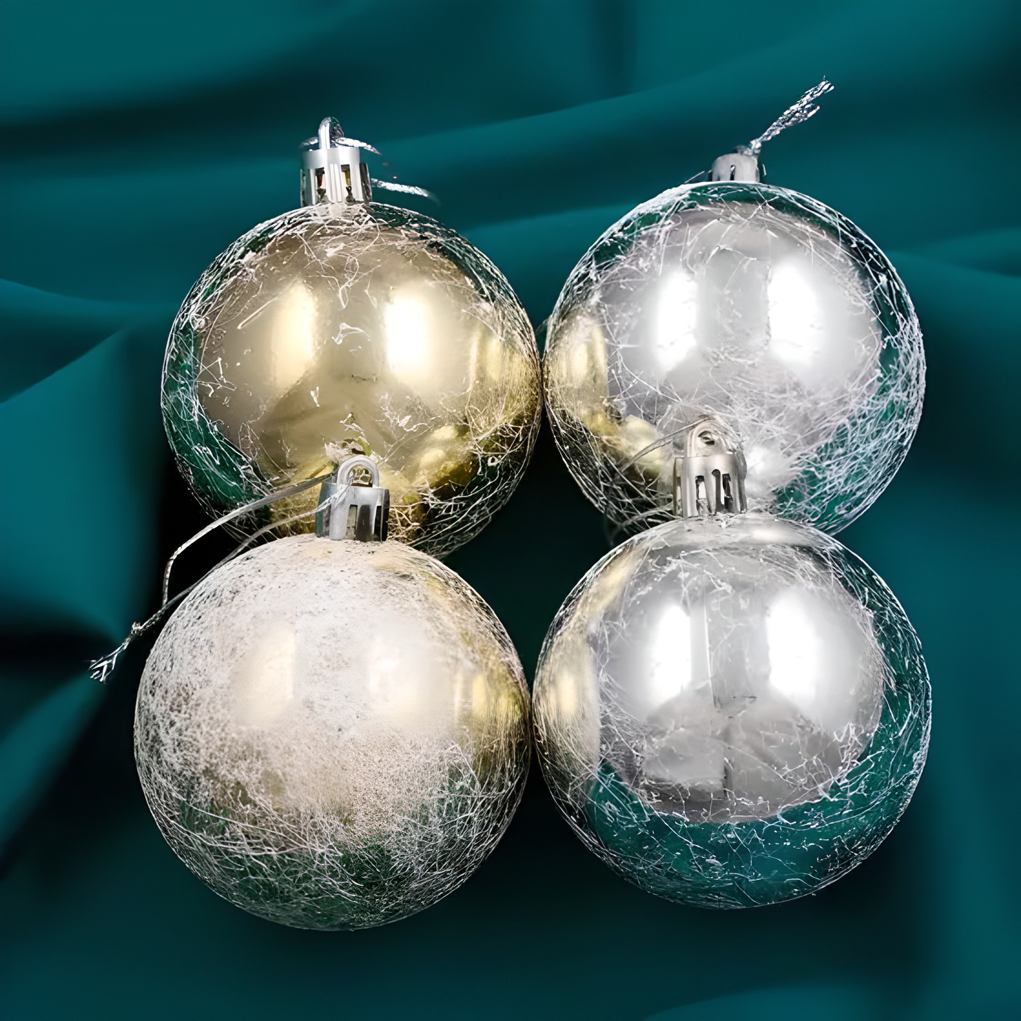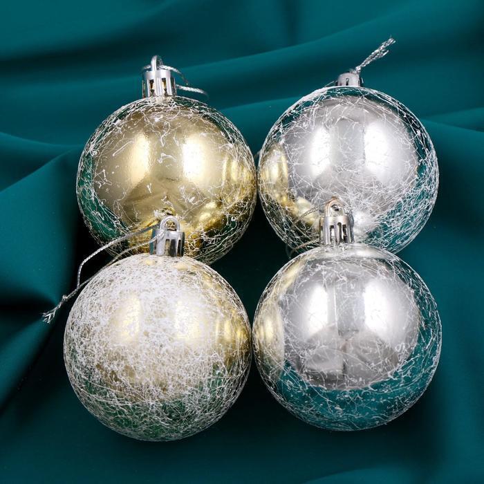 !09 Набор елочных шаров (набор 8 штук) "Антик" пластик d-6 см. цвет серебристо-золотой