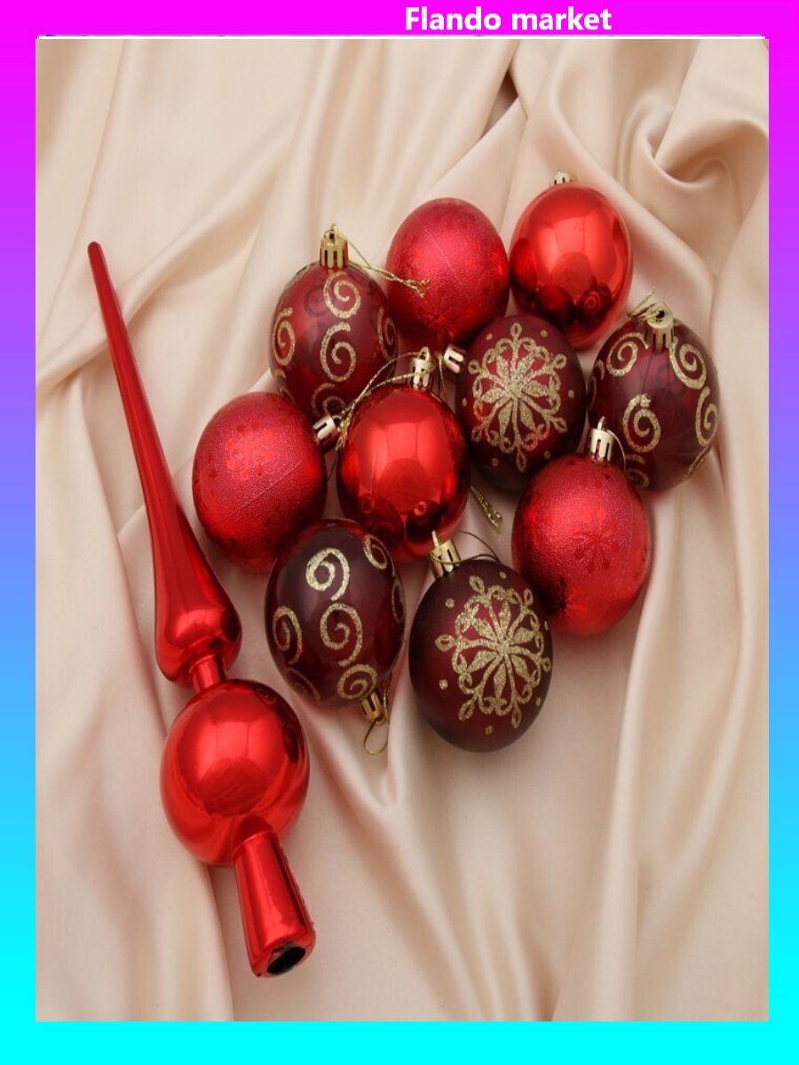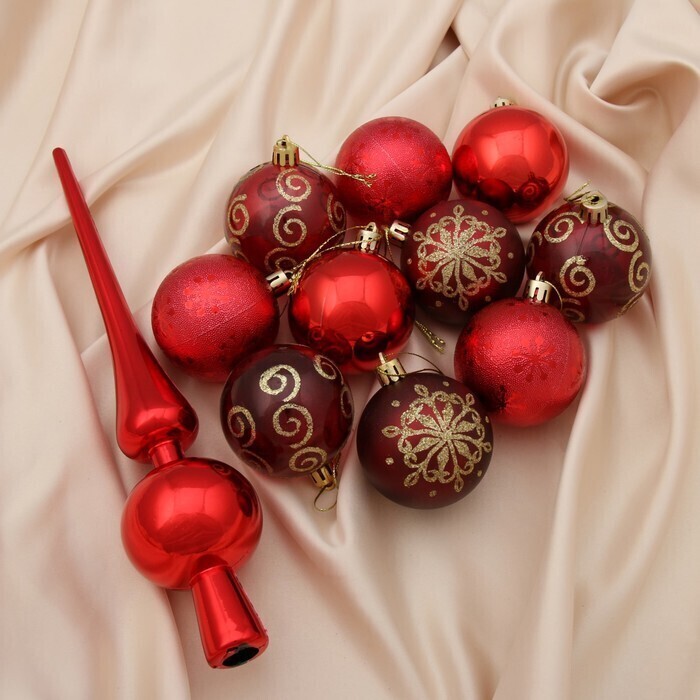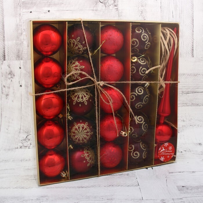 !09 Набор елочных шаров (набор 20 штук) + верхушка "Новогодний" пластик d-6 см. цвет красный