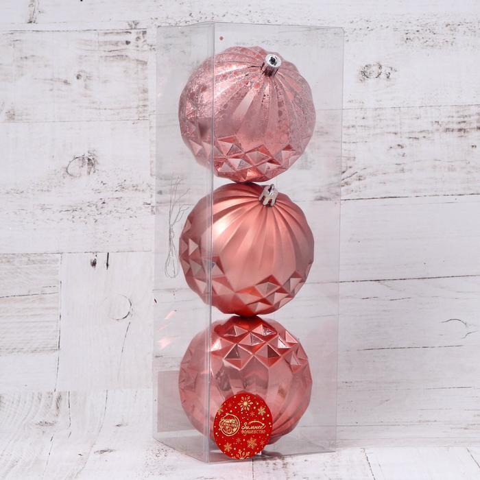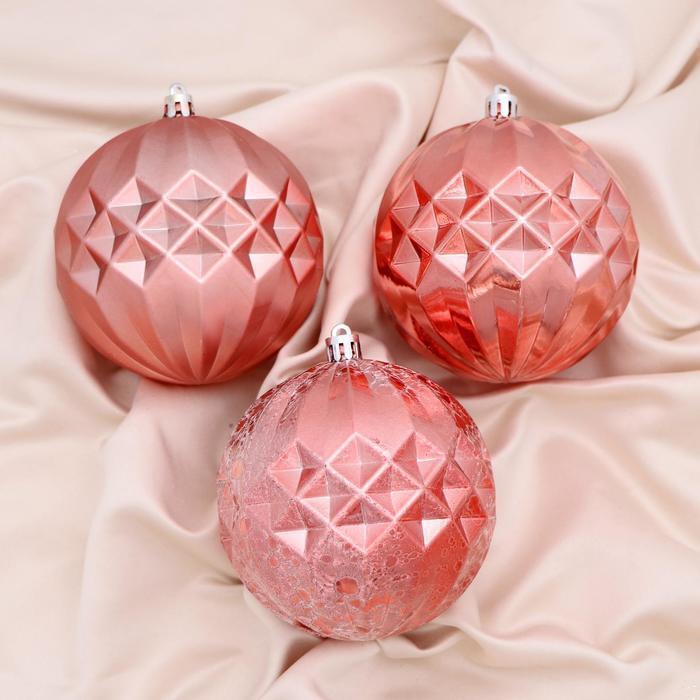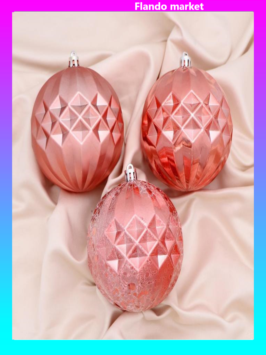 !09 Набор елочных шаров (набор 3 штуки)"Гроуни ассорти" пластик d-10 см. цвет розово-бежевый