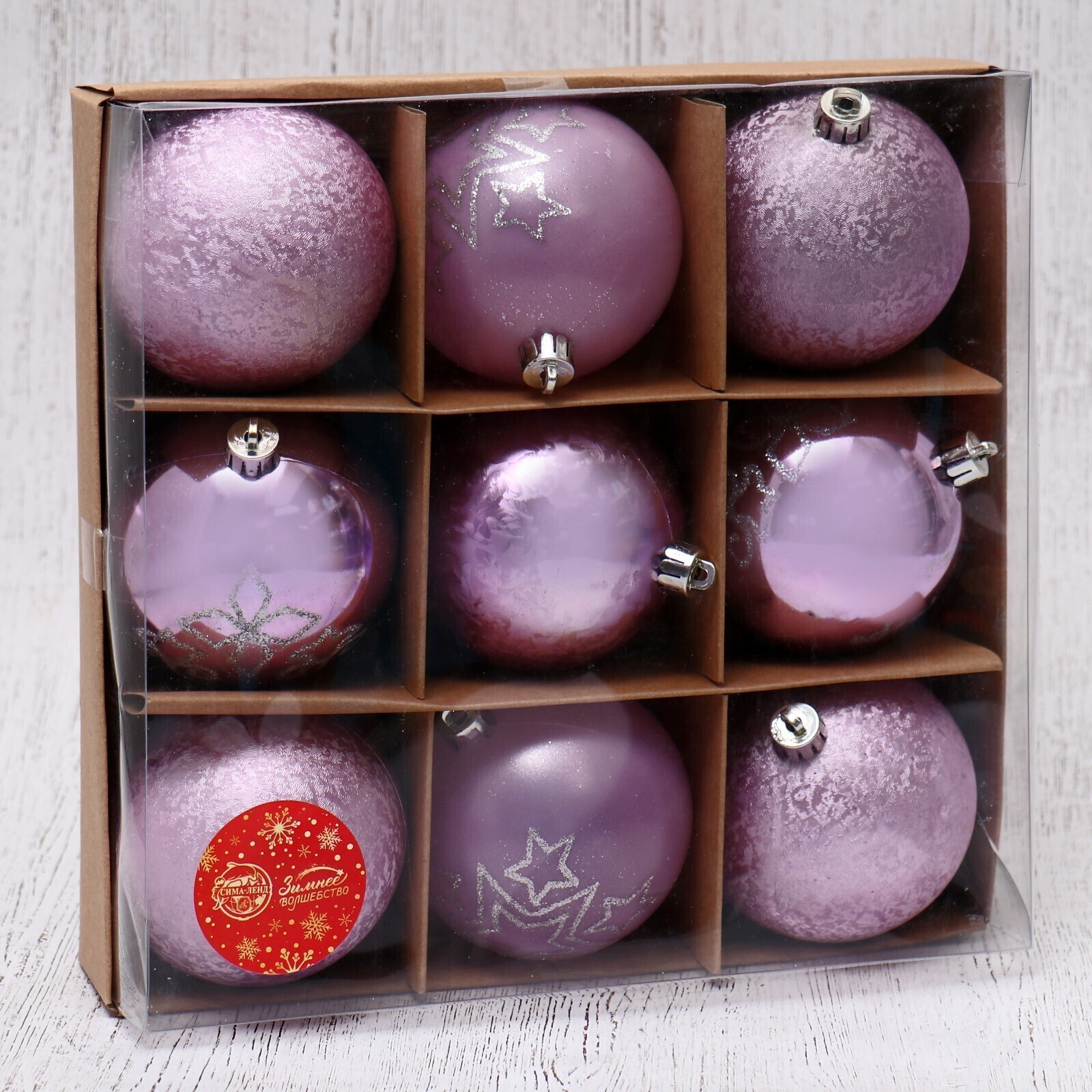 !09 Набор елочных шаров (набор 9 штук) "Эмили звёзды ассорти" пластик d-8 см. цвет розовый микс