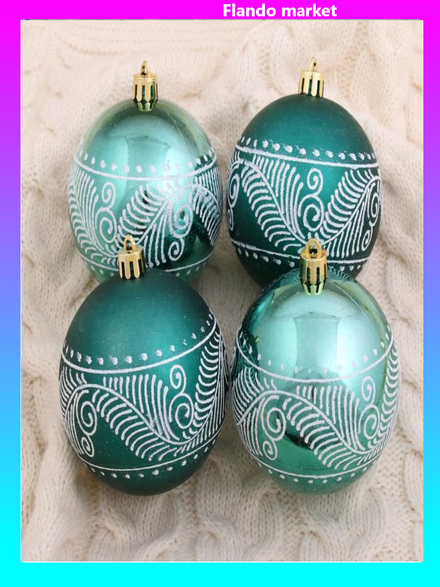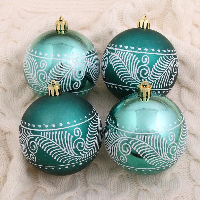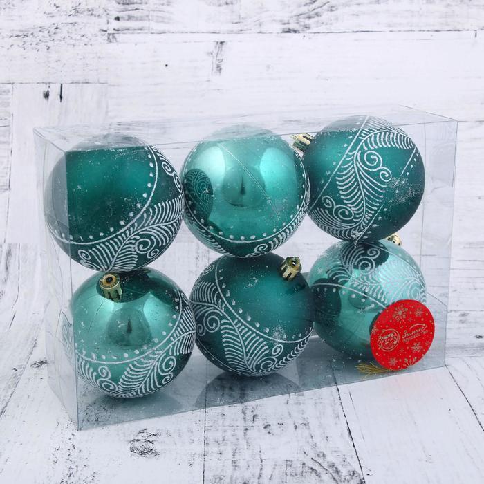 !09 Набор елочных шаров пластик (набор 6 штук) «Снежные перья», d=8 см, цвет зелёный
