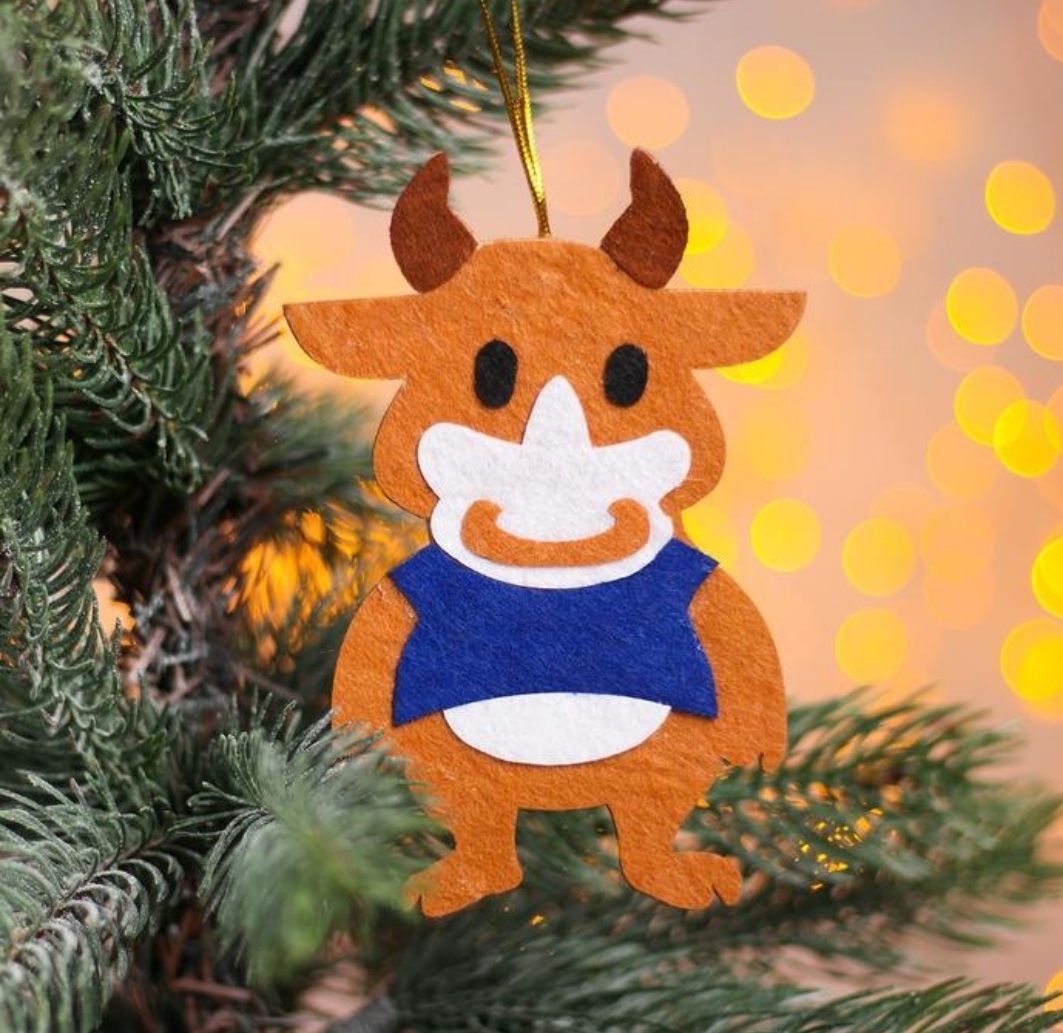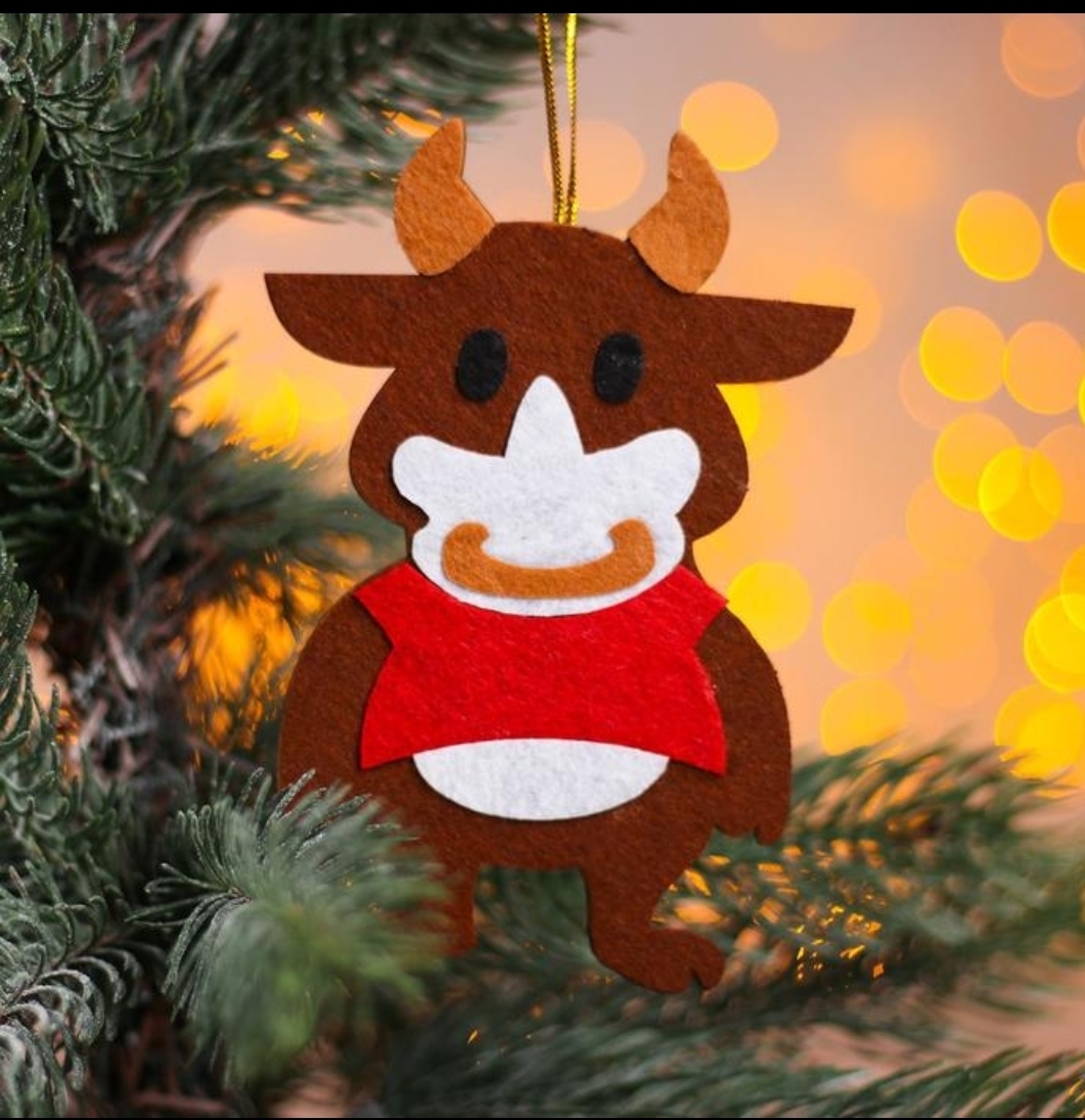 !09 ПОДВЕСКА НОВОГОДНЯЯ 6 ШТУК "БЫЧКИ С КОЛЬЦОМ В НОСУ" 8,5*12,5 СМ., ДИЗАЙН МИКС