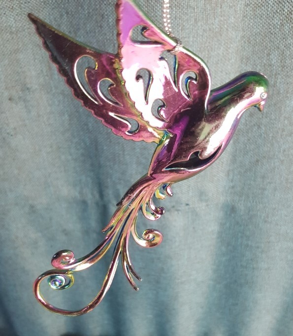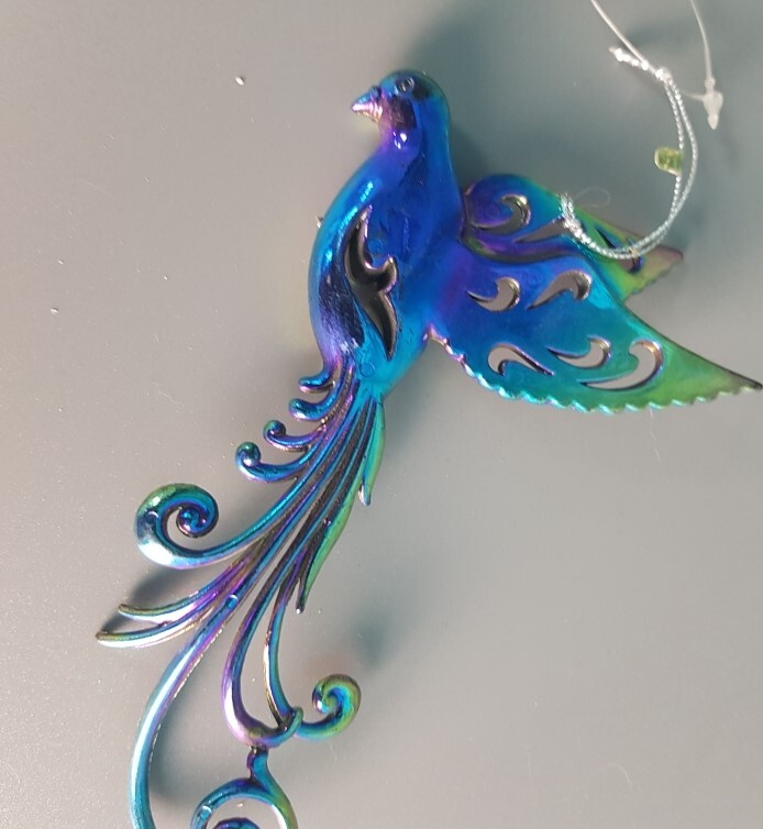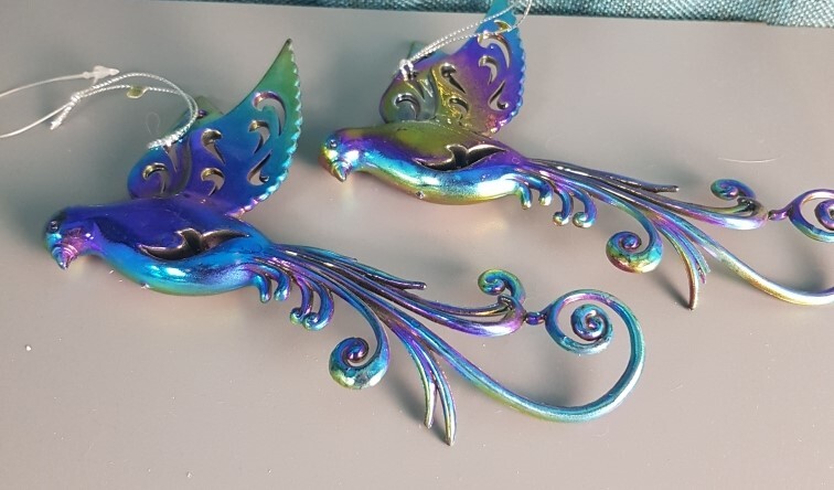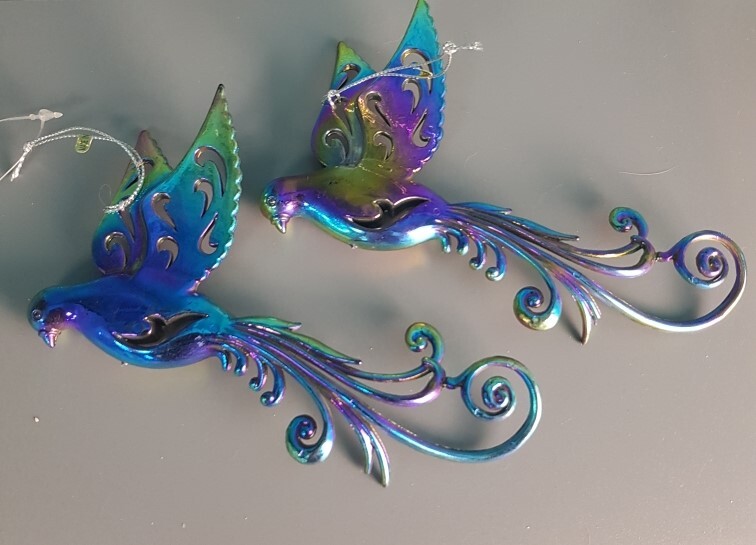 !09 Набор из 2-х штук: Елочное украшение "Bird of paradise" Птичка 15.5 см. цвет фуксия/фиолетовый