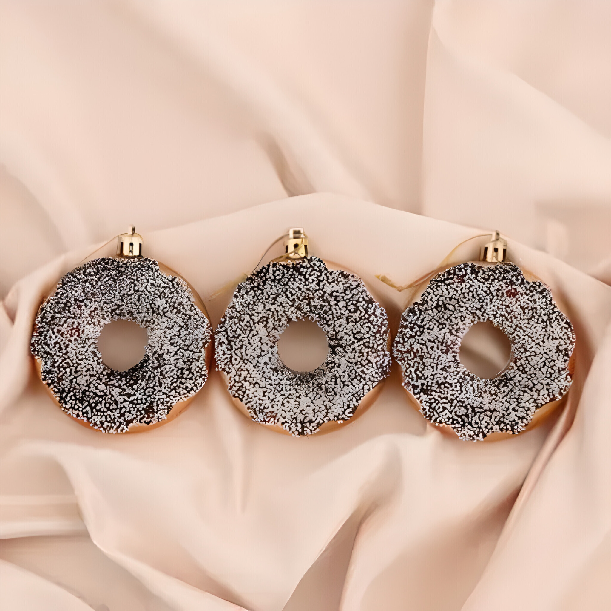 !09 Набор елочных украшений (набор 6 штук) "Пончики", 8 см, цвет коричневый