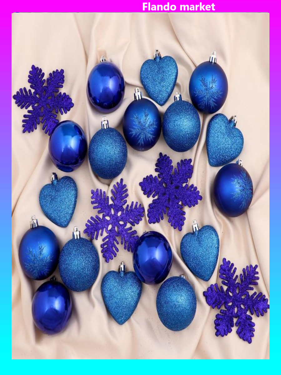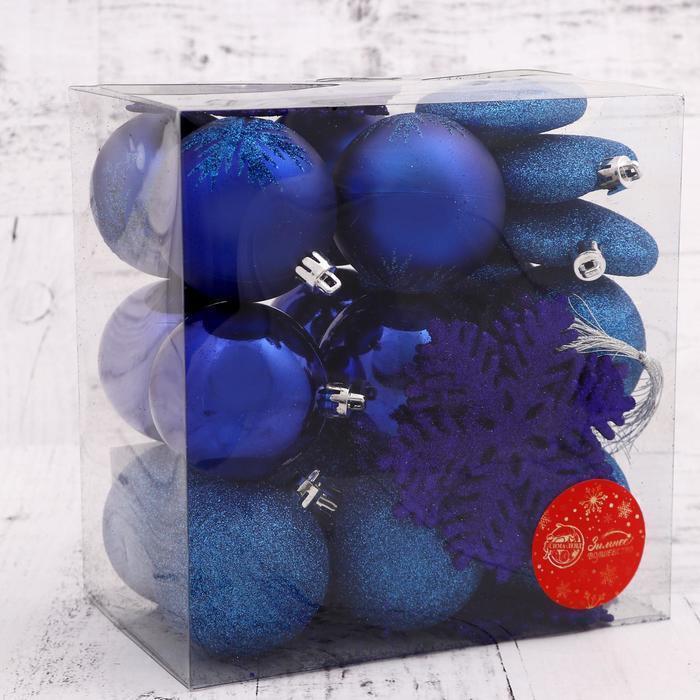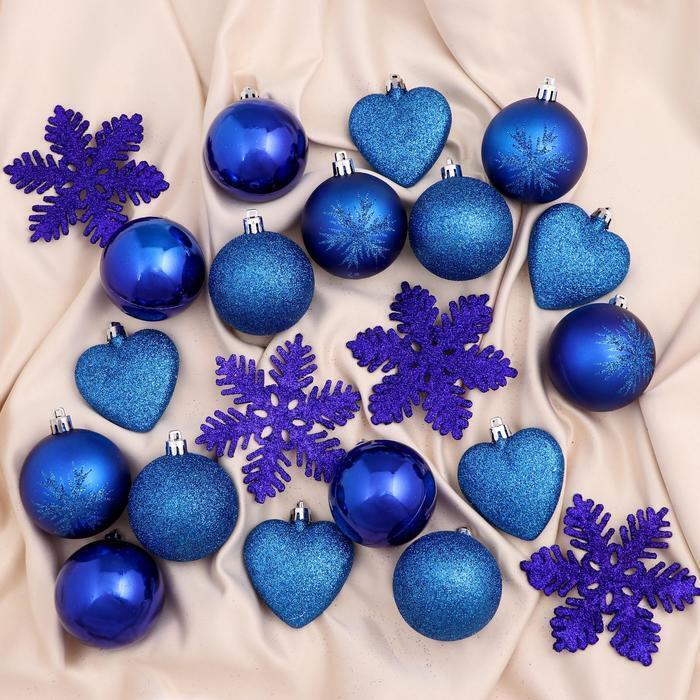 !09 Набор елочных украшений (набор 30 штук) "Амур" (16 шаров, 6 сердец, 8 снежинок) цвет синий