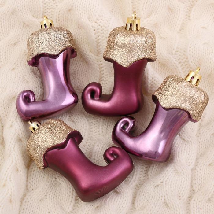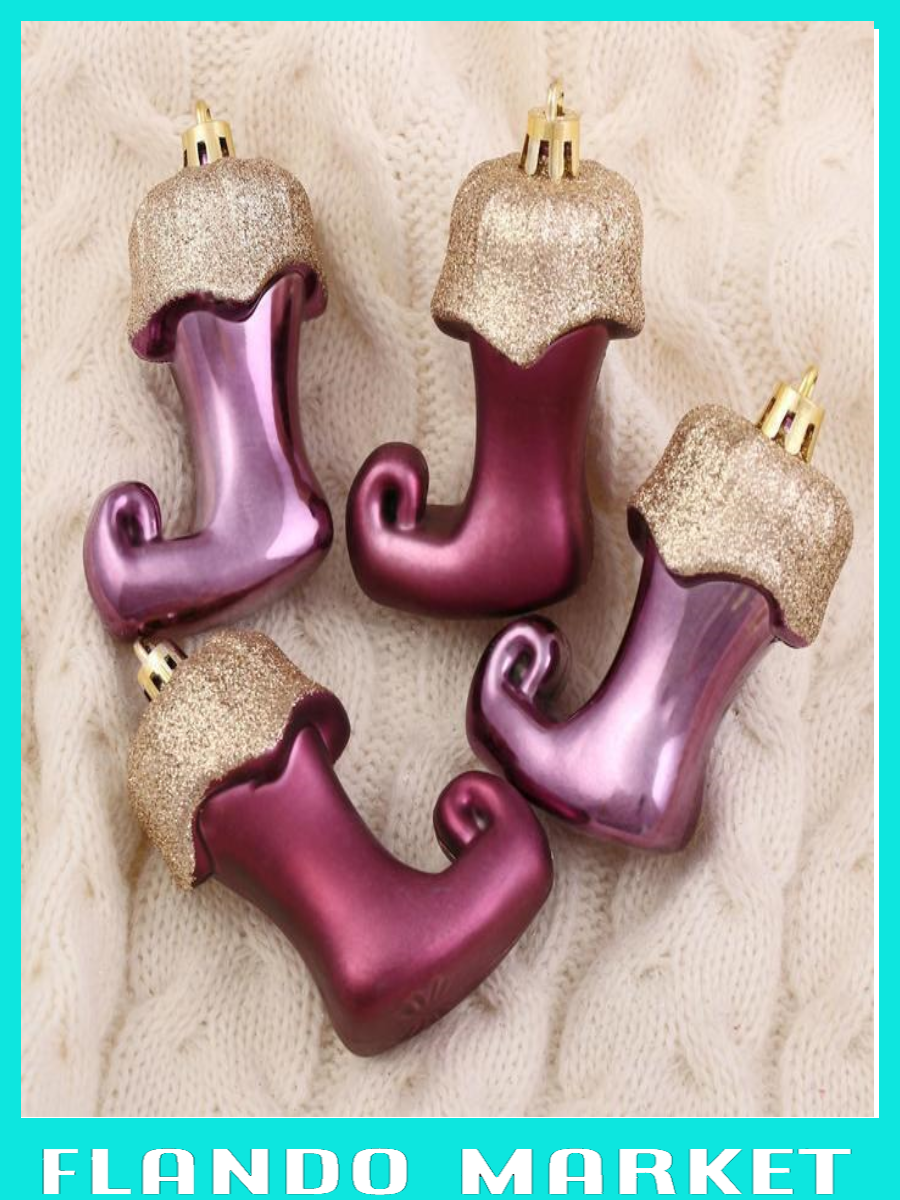 !09 Набор елочных украшений (набор 12 штук) "Сапожок эльфа", 5 x 6,5 см, цвет бордовый
