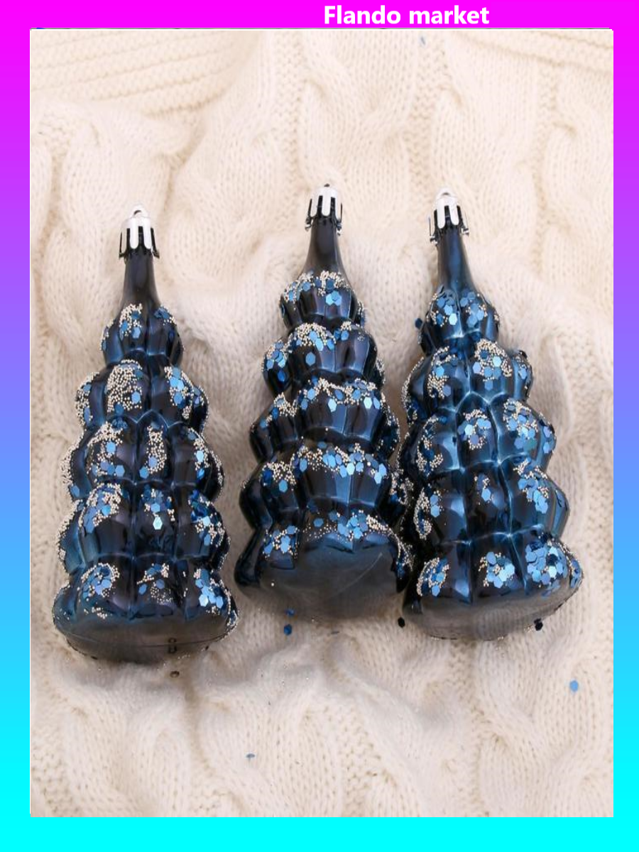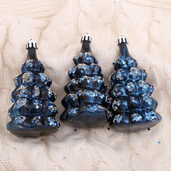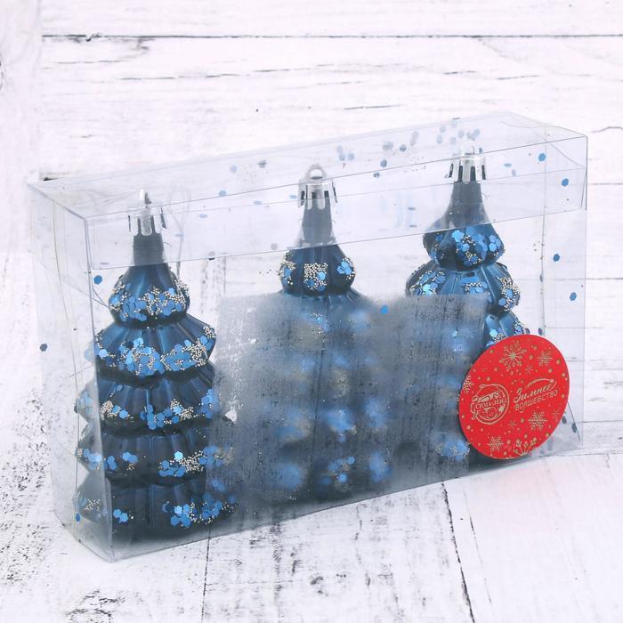 !09 Набор елочных украшений (набор 3 штуки) "Ёлочка в сугробах" 5х9,5 см. цвет синий