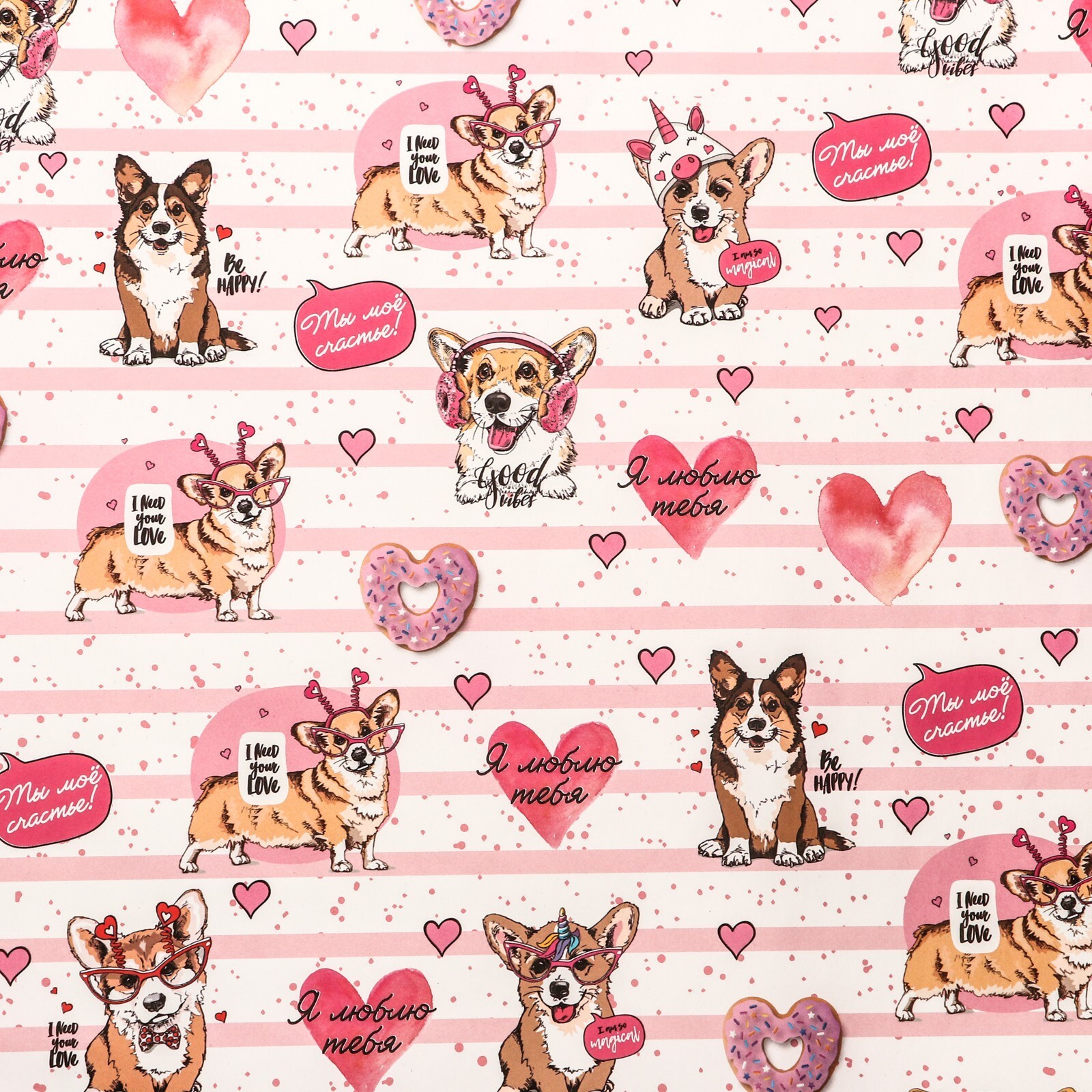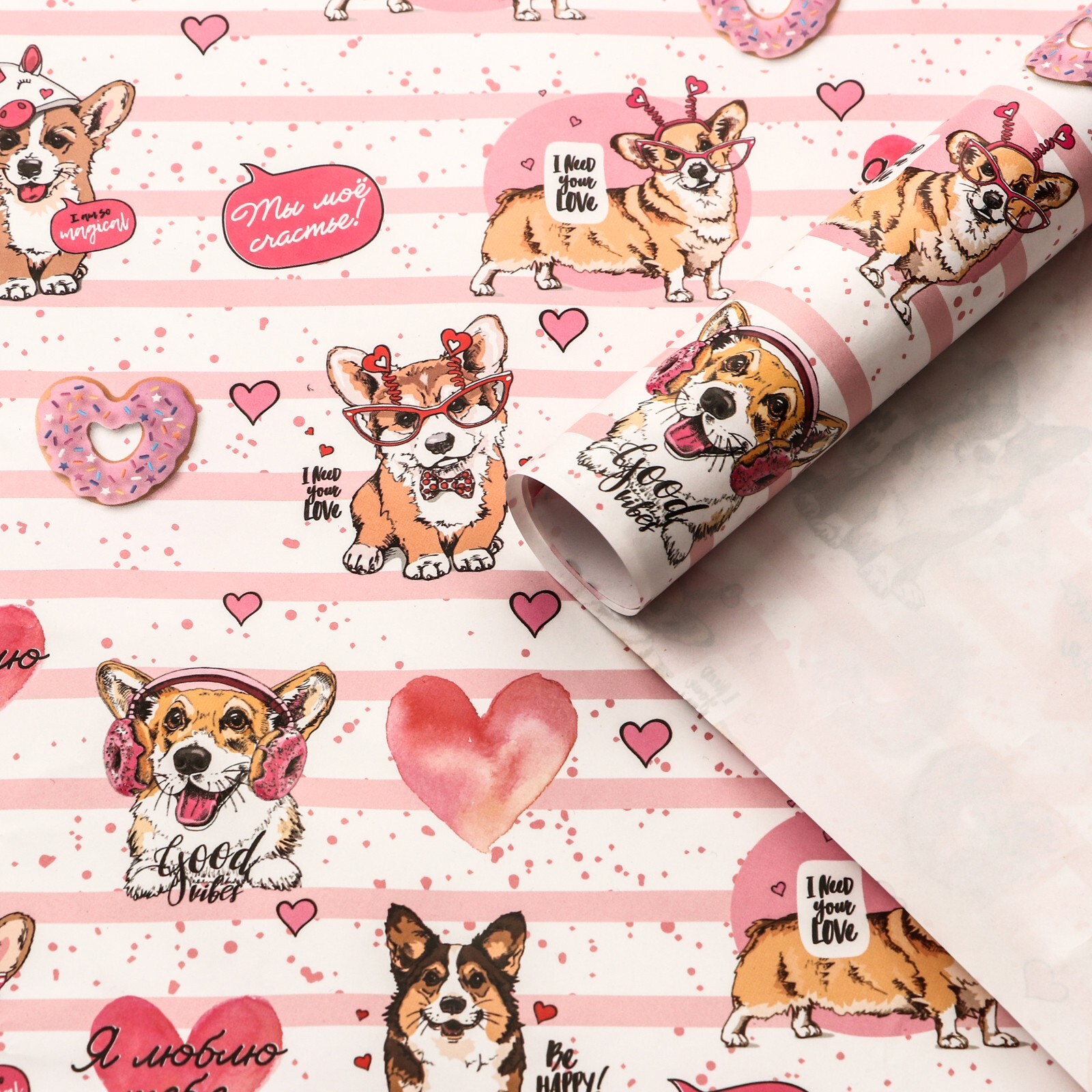 !09 Набор глянцевой бумаги (3 листа): "Корги" ,50 × 70 см ,2 листа + «Послания» ,1 лист, 70×100 см
