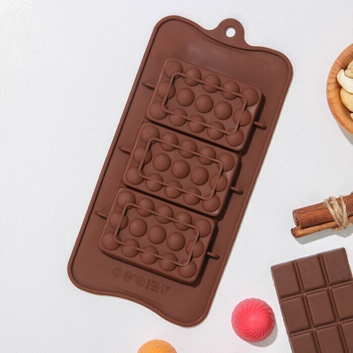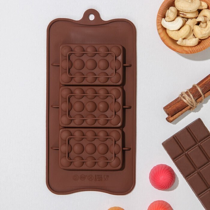 !09 Форма силиконовая для шоколада «Мини-шоколадки», 22×11×1 см, 3 ячейки, цвет шоколадный