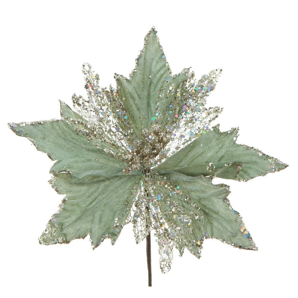 !09 Набор из 2-х изделий - Цветок искусственный "Пуансеттия", L24 W24 H21 см. Блески цвет зеленый