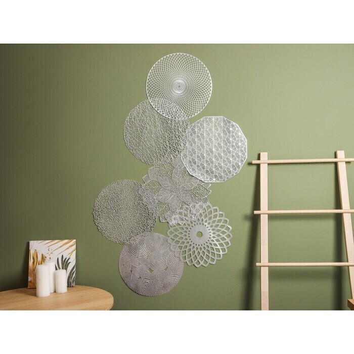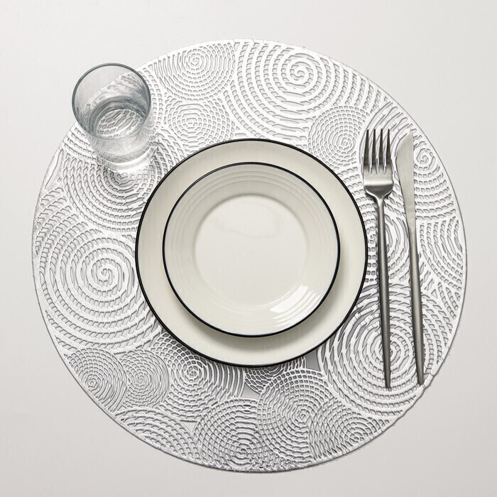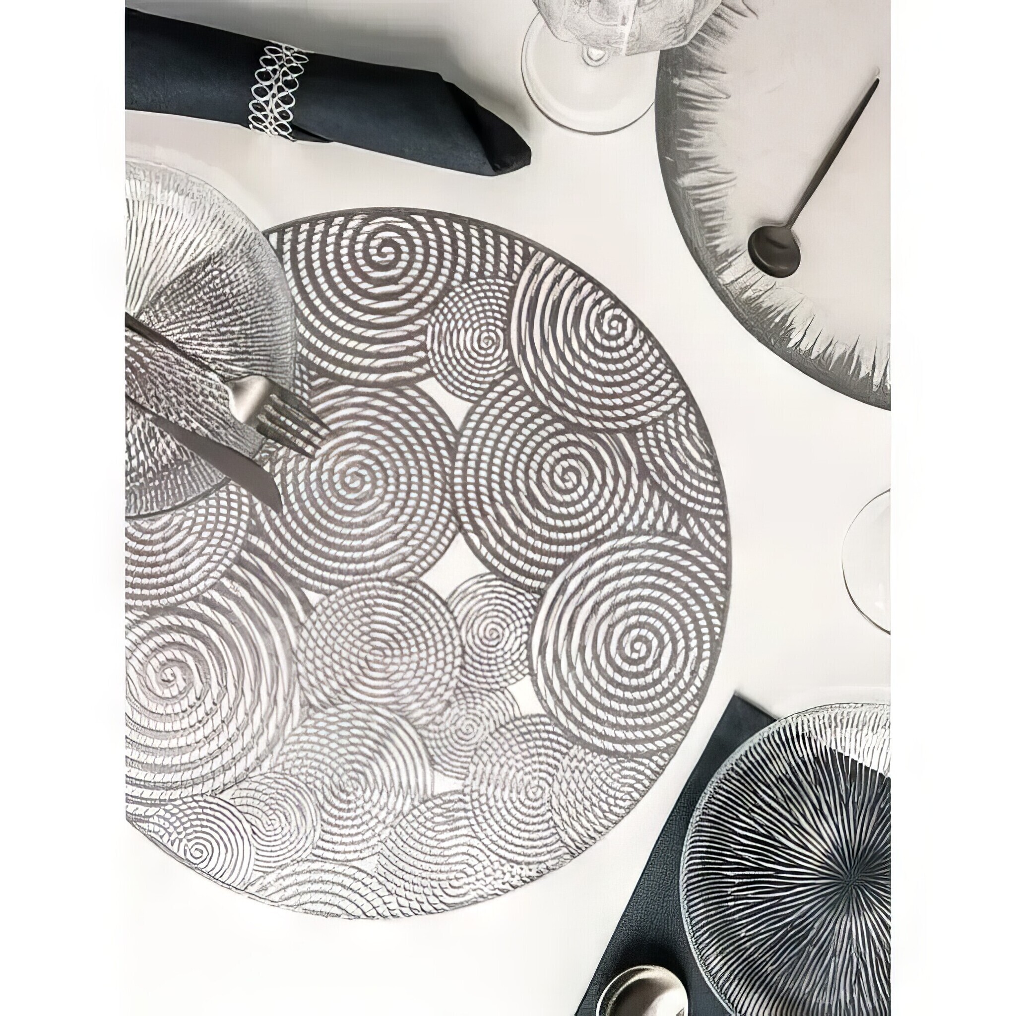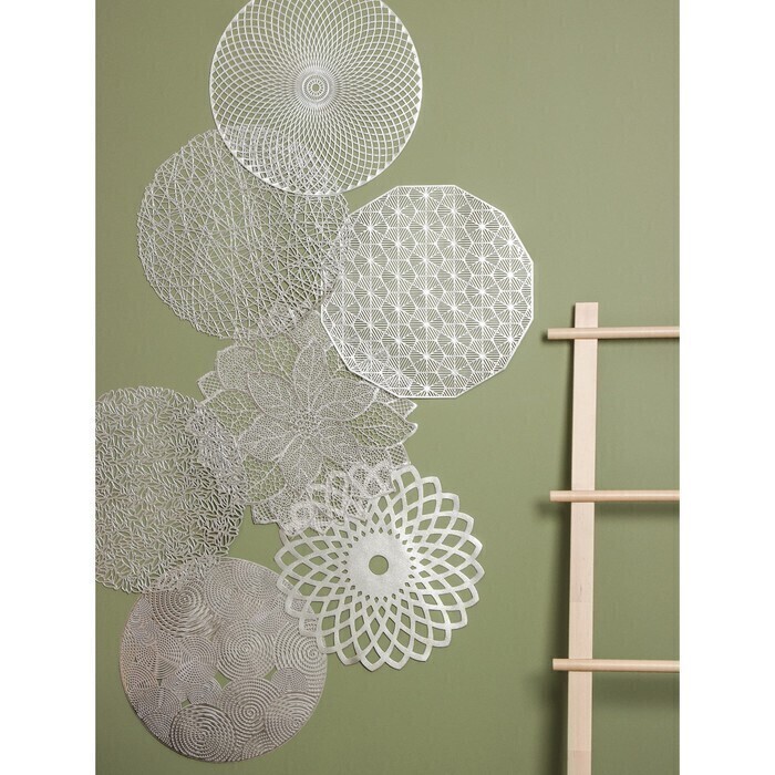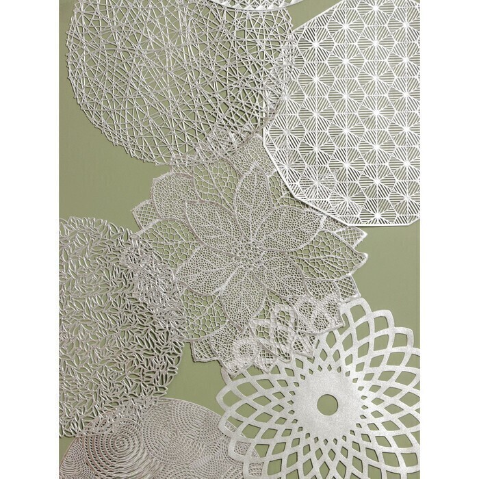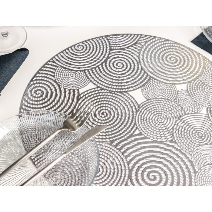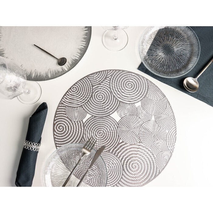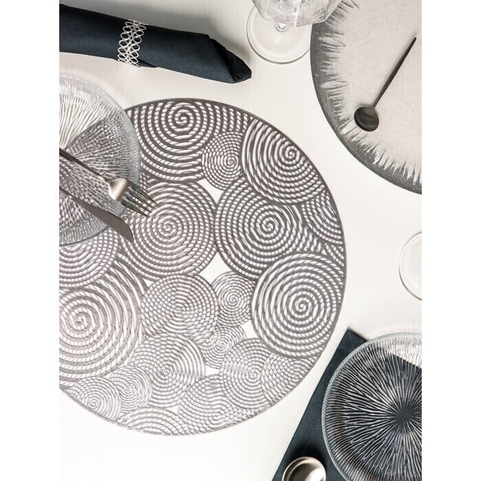 !09 Набор из 5-ти предметов - Салфетка сервировочная на стол «Гипноз», d=38 см, цвет серебро