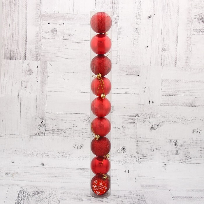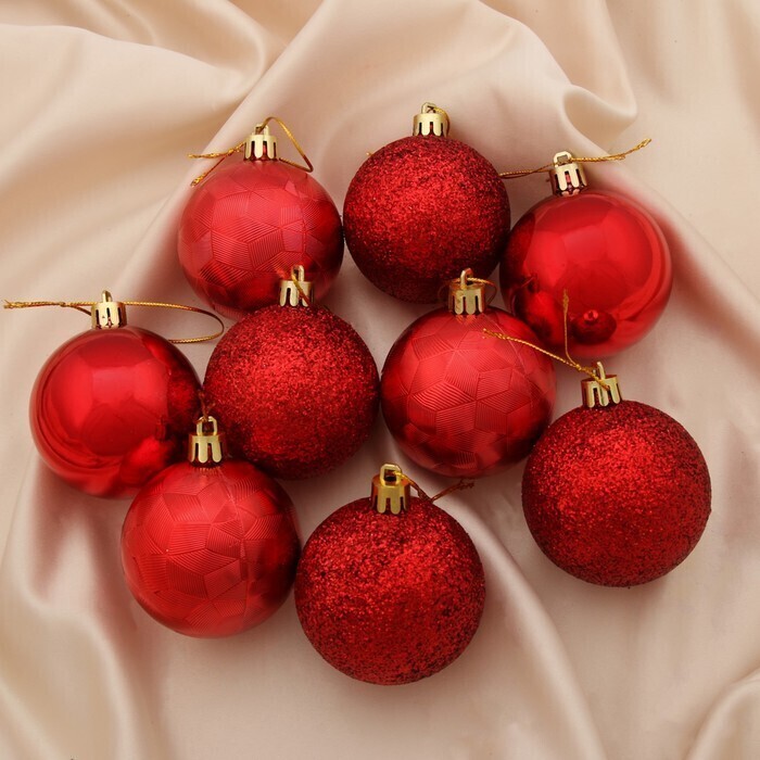 !09 Набор новогодних шаров (набор 9 штук) "Камилла" красный пластик d-6 см.
