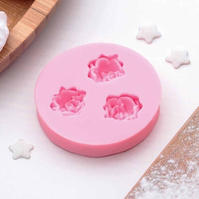 !09 Молд «Три малых розы», 4,5 см, цвет розовый