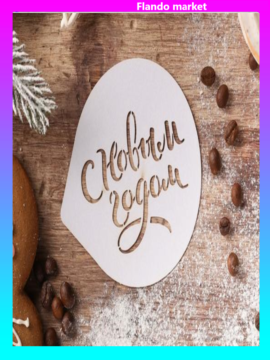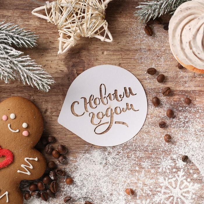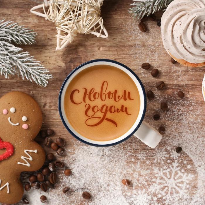 !09 Набор из 2-х штук - Трафарет для кофе "С Новым Годом" 9,5*8,5 см.