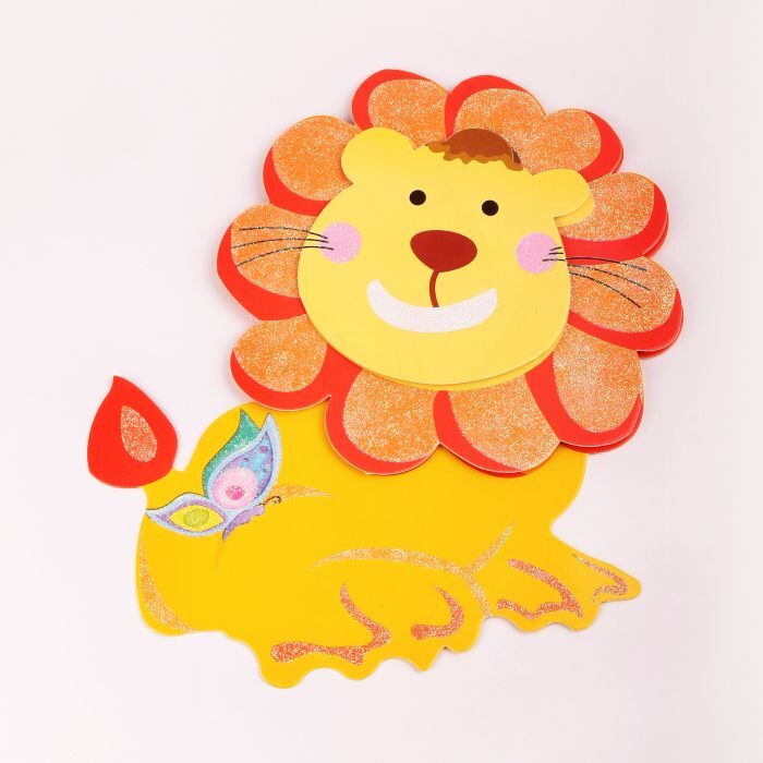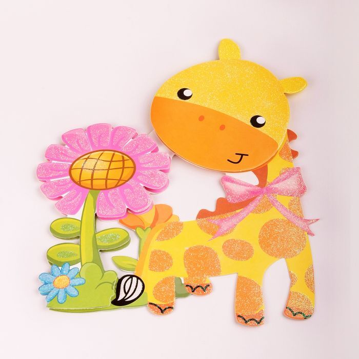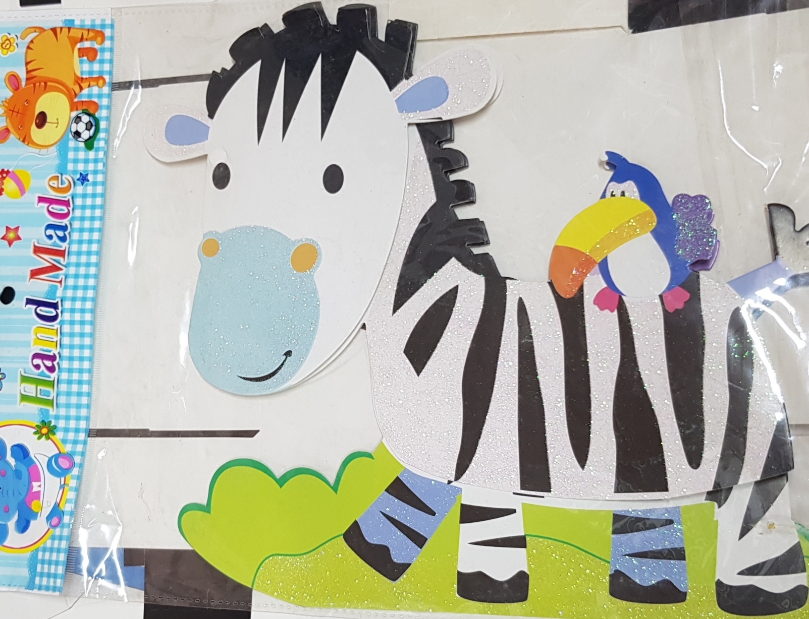 !09 Набор из 4-х декоративных наклеек "Веселые животные": Наклейка декоративная самоклеющаяся, 35,5 х 25 см., дизайн ЛЕВ+ТИГР+ЖИРАФ/ЗЕБРА