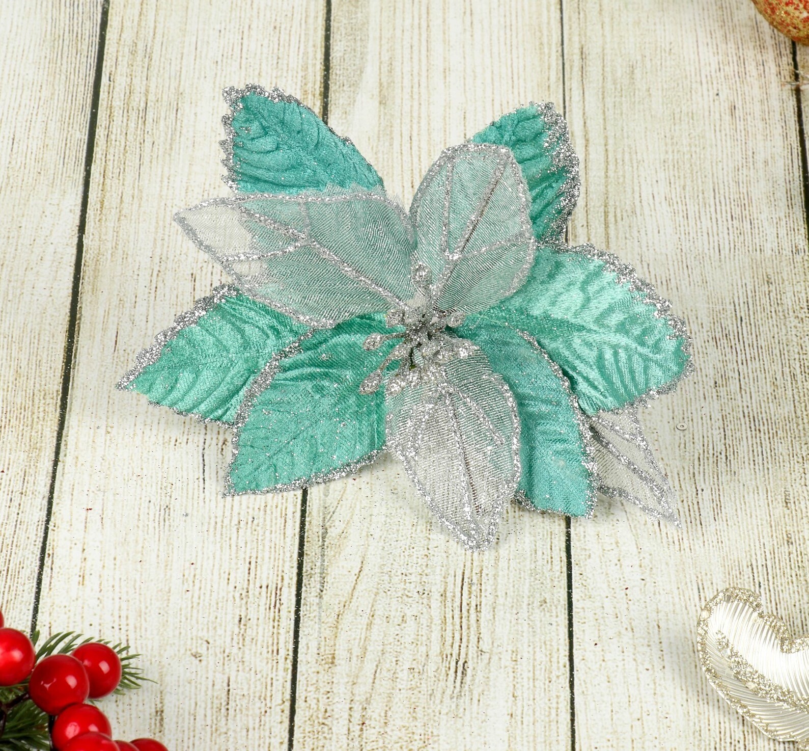 !09 Набор из 2-х изделий - Декор «Зимний цветок», 15.5×12 см, цвет бирюза