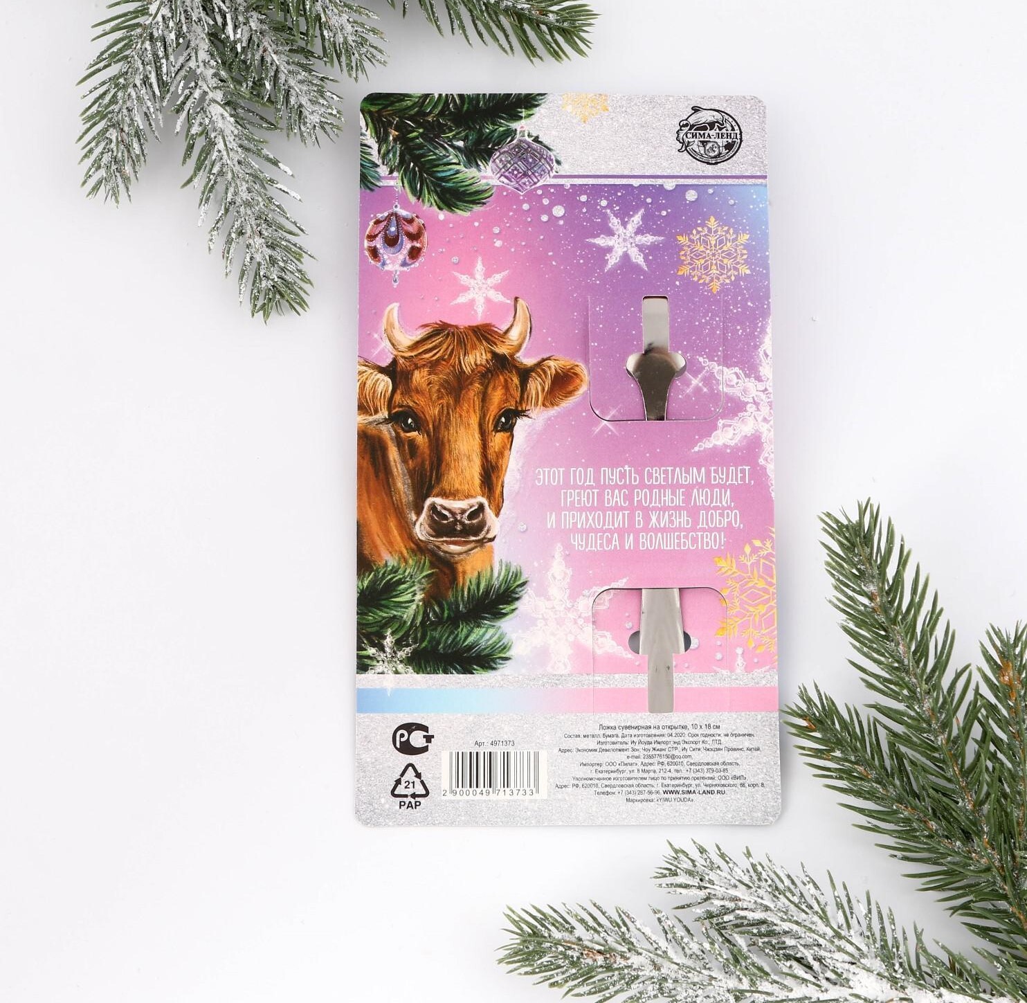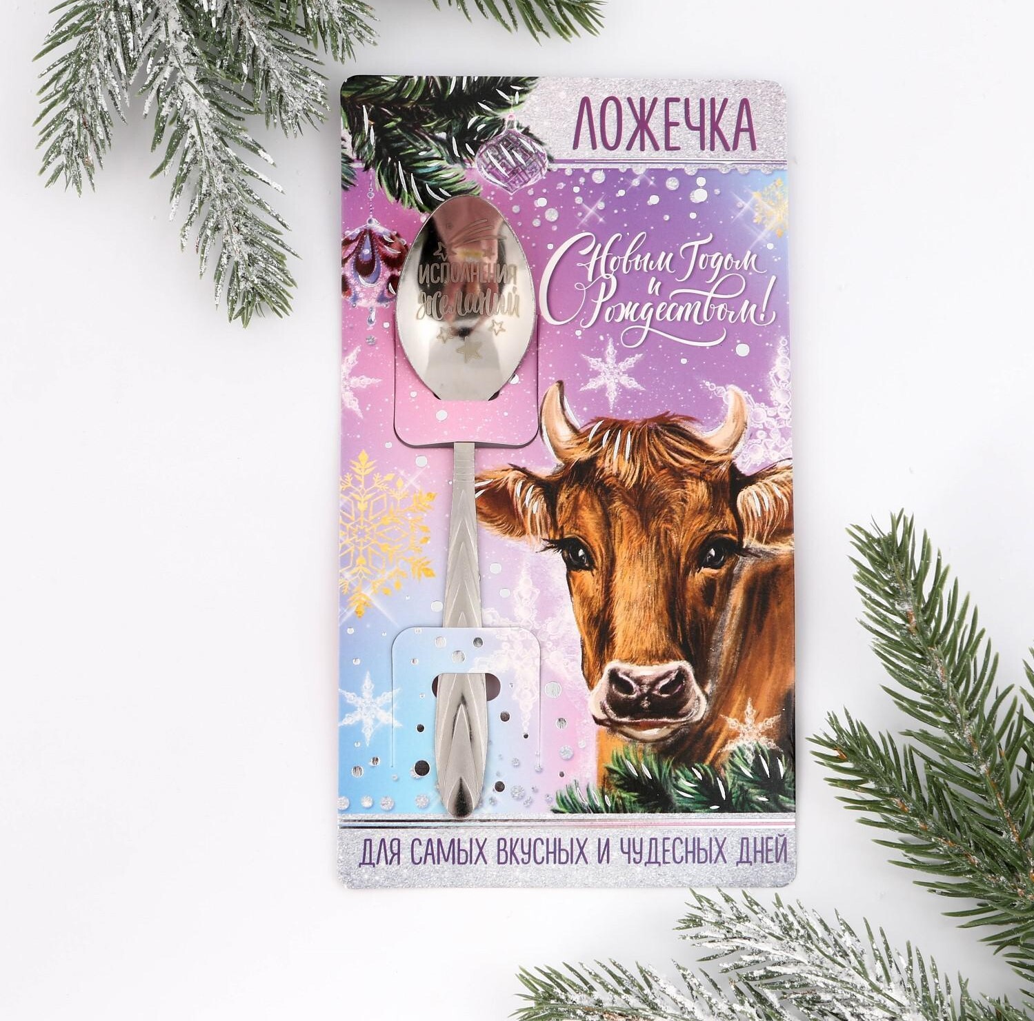 !09 НАБОР ИЗ 3-Х ШТУК - Ложка сувенирная на открытке «С новым годом и рождеством», 10 х 18 см. (2 штуки) +Ложка чайная с гравировкой «100% крутой мужик», h=14 см. (1 штука)