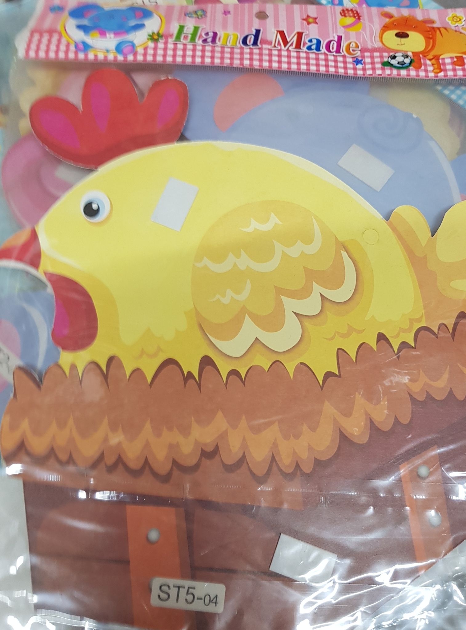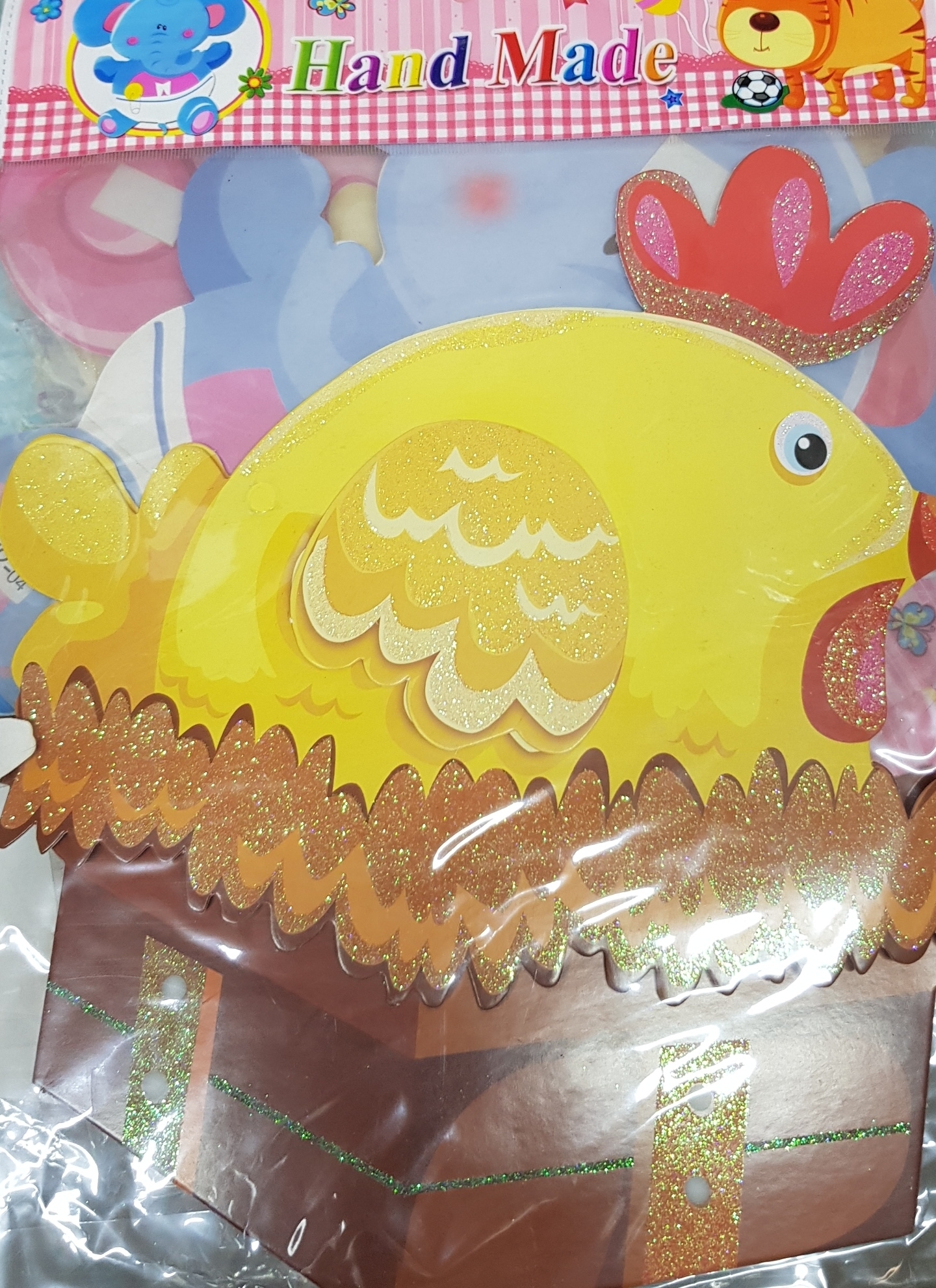 !09 Набор из 3-х декоративных наклеек "Домашние животные": Наклейка декоративная самоклеющаяся, 35,5 х 25 см., дизайн ЦЫПЛЕНОК+КОРОВА+БАБОЧКА