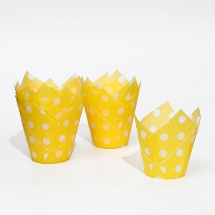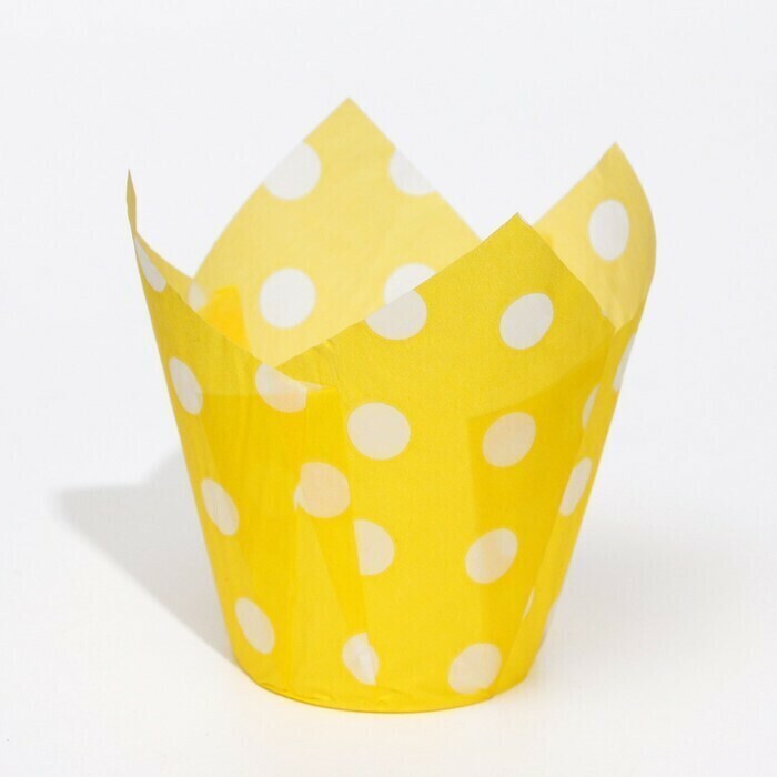 !09 Набор из 40 штук - Форма бумажная "Тюльпан", жёлтый в белый горох, 5 х 8 см.
