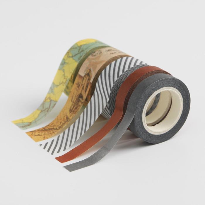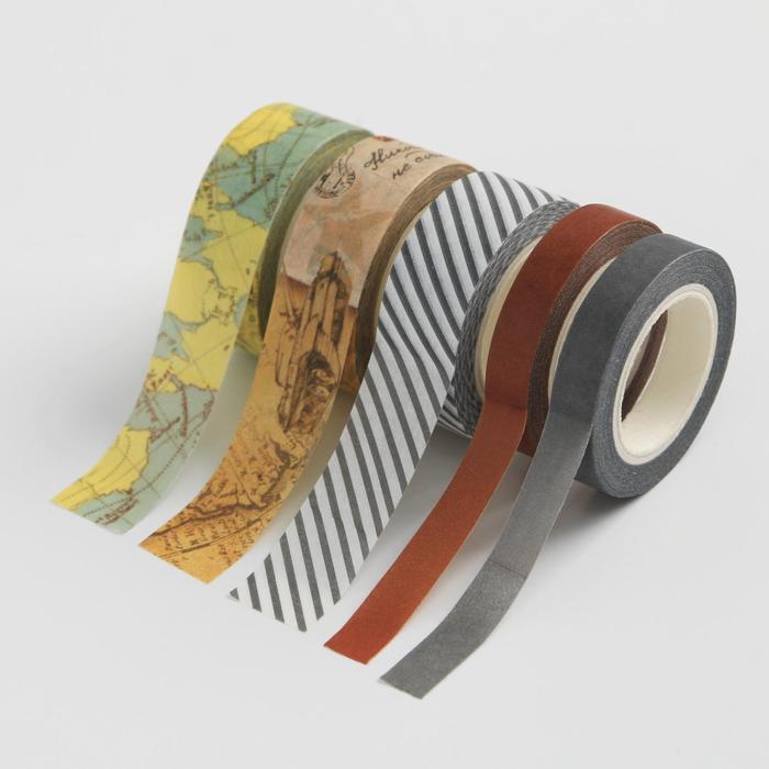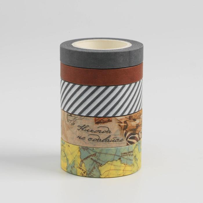 !09 Набор лент для декора и упаковки подарков; Набор клейких лент "Man" 5 шт. + Лента атласная, 2 см.*45 м., цвет хаки