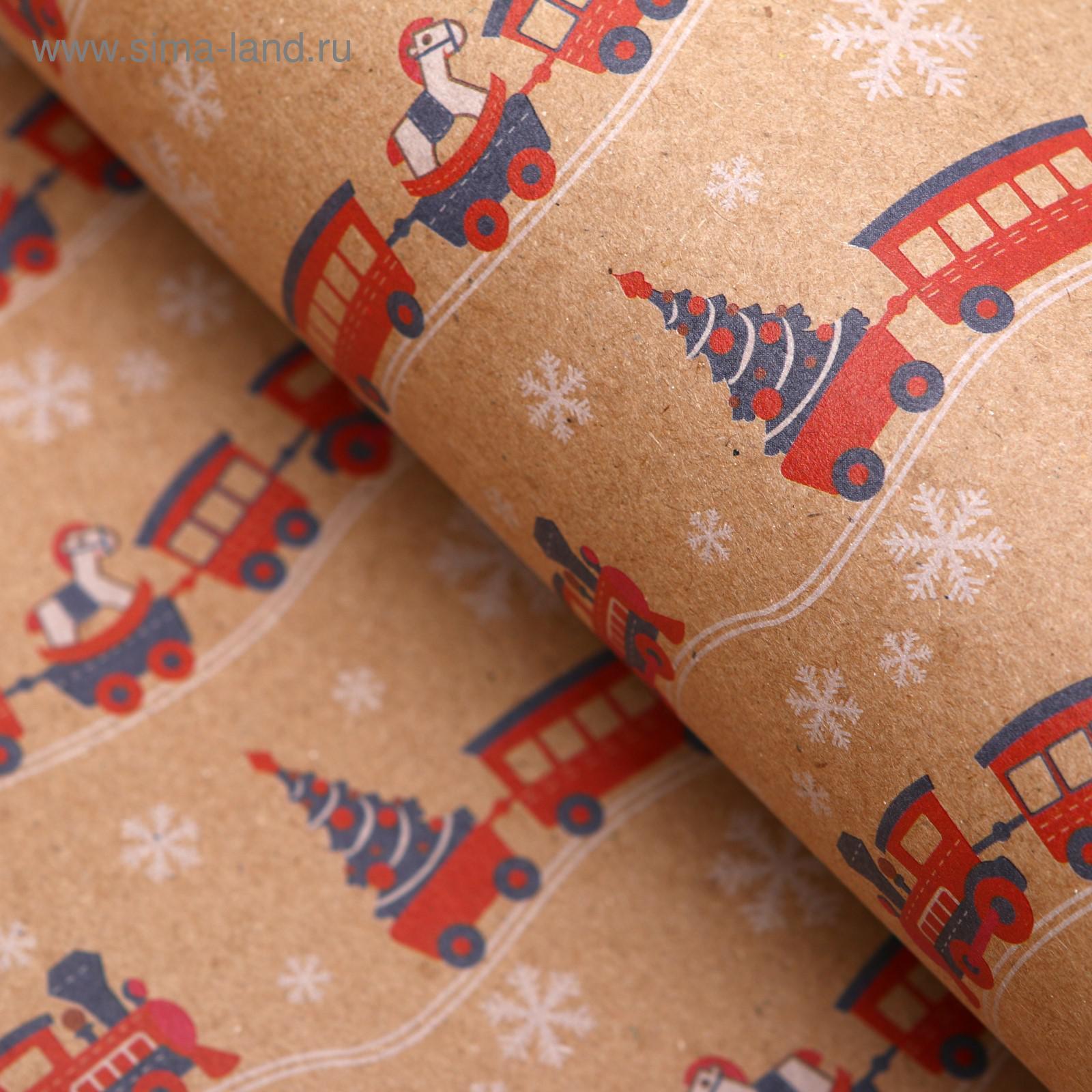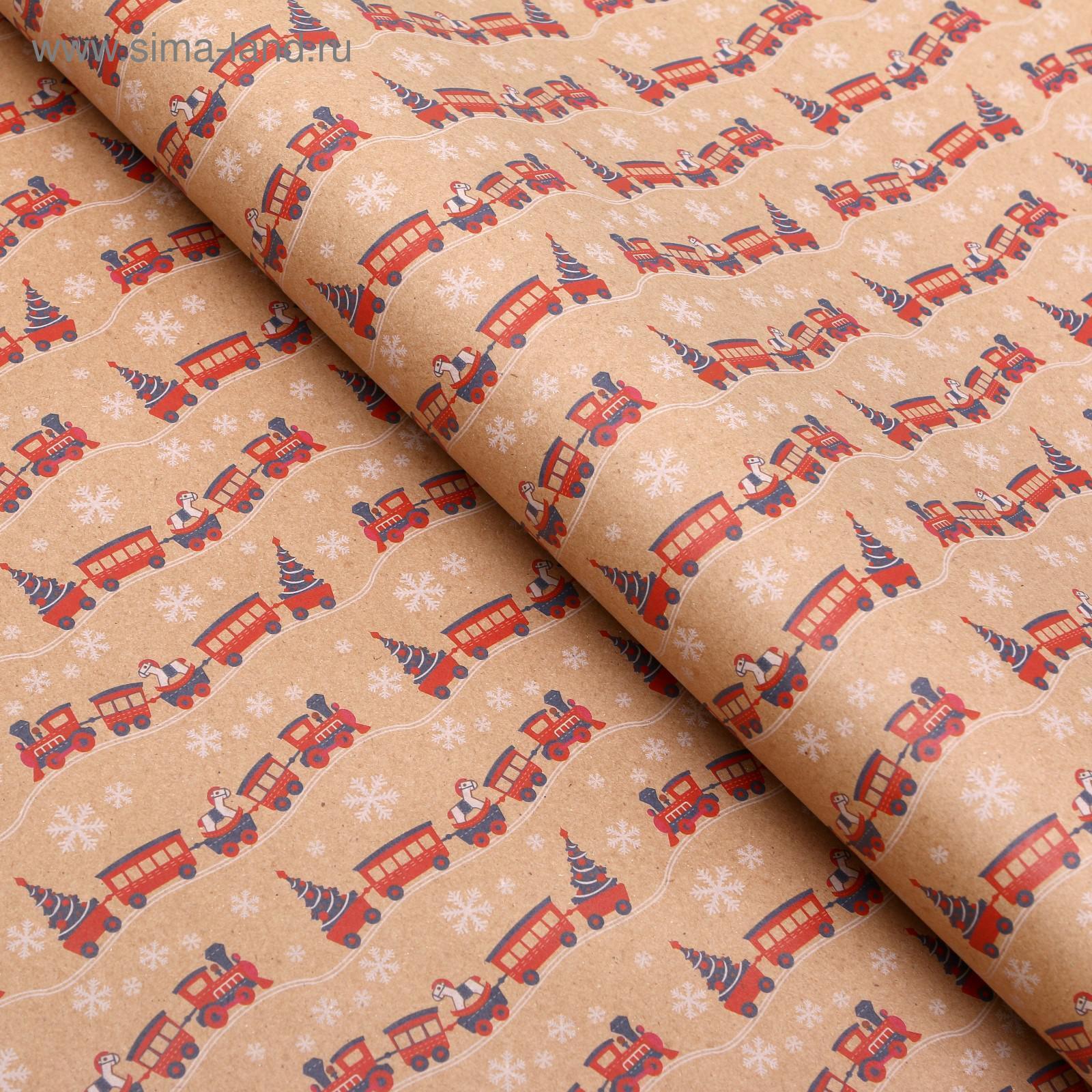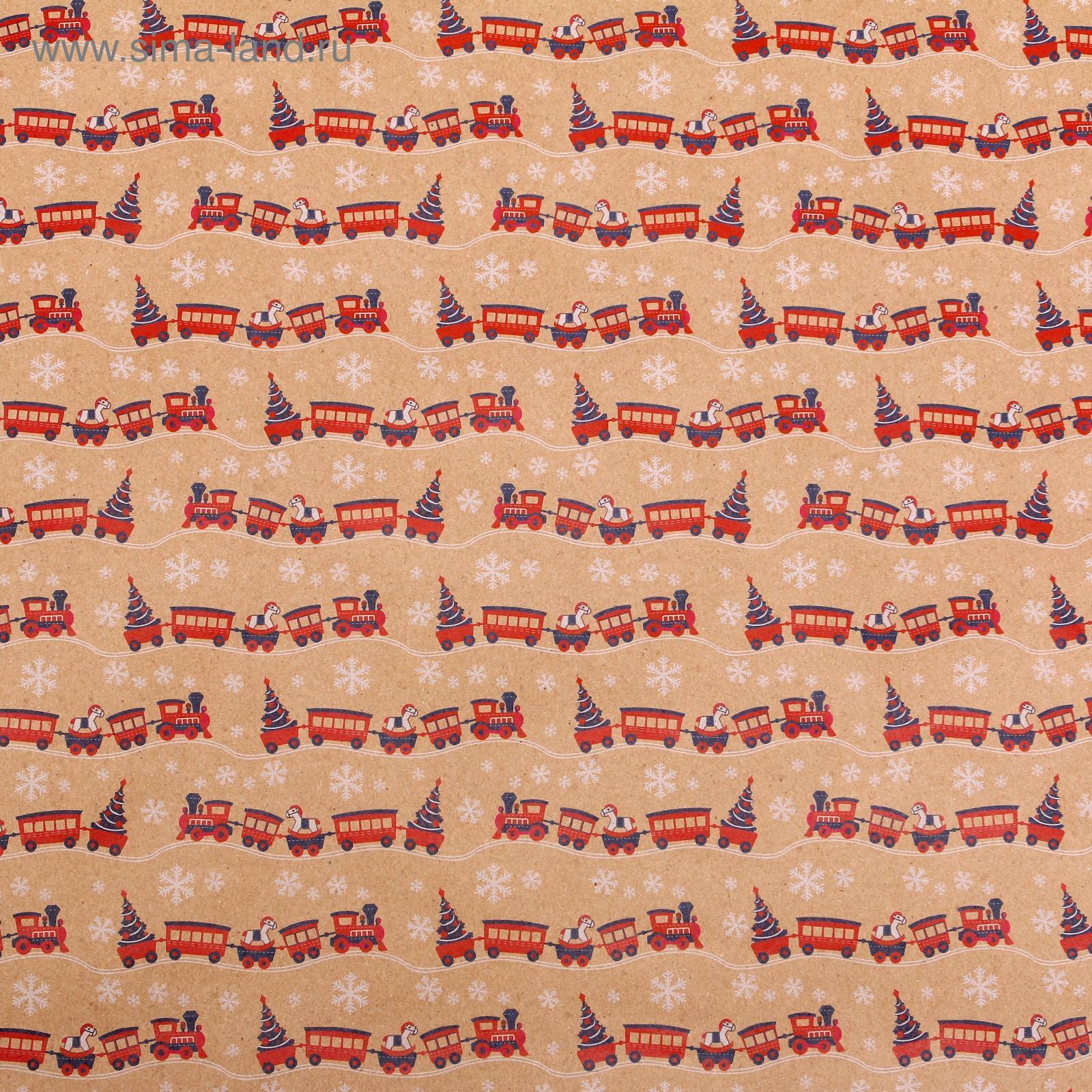!09 Бумага упаковочная, 3 листа, крафт, "Новогодний паровоз", 50 х 70 см.