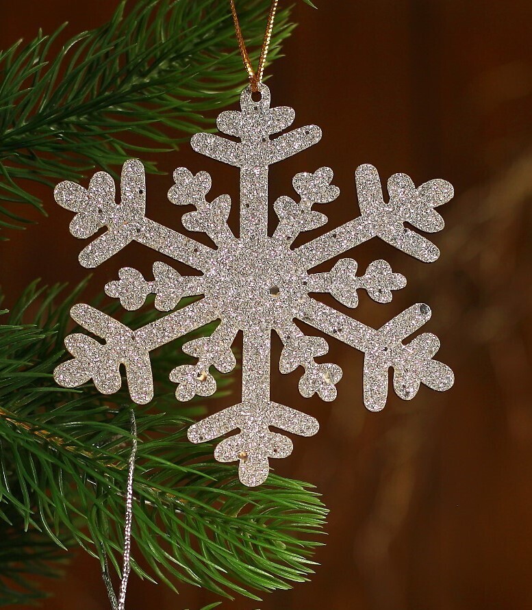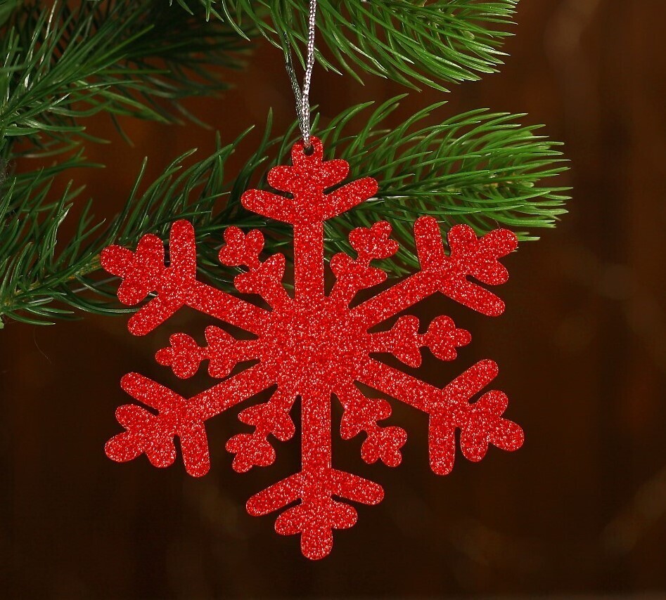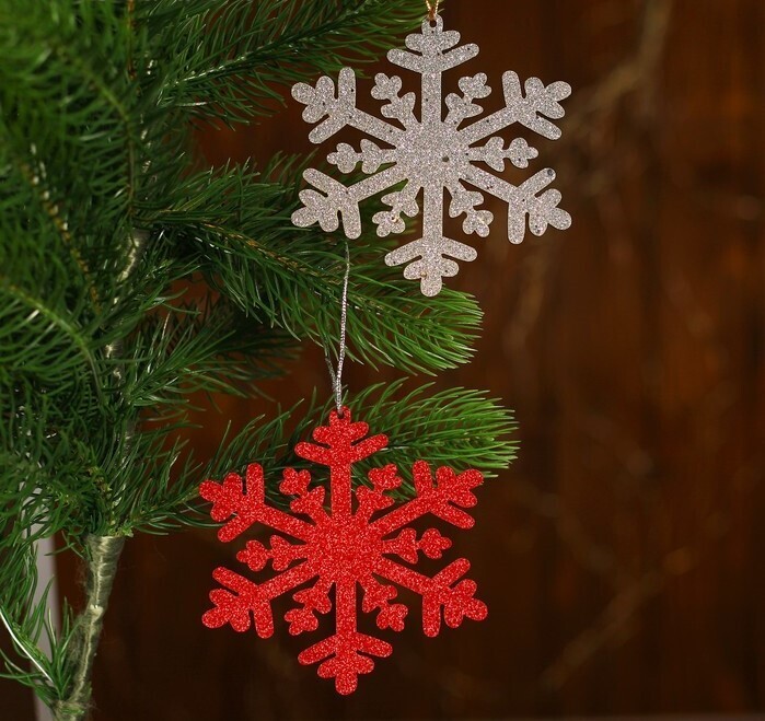 !09 Набор новогодних подвесок(набор 7 штук) «Снежный блеск», цвет красный - 4 штуки, цвет серебро - 3 штуки 11 х 11 х 0,2 см.