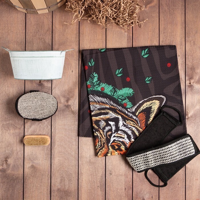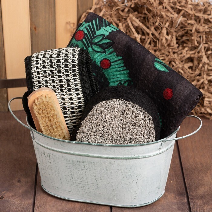 !09 Набор подарочный "MEN" 5 предметов (Мочалка 2 вида, Полотенце 70Х146 см., Щётка, Емкость))