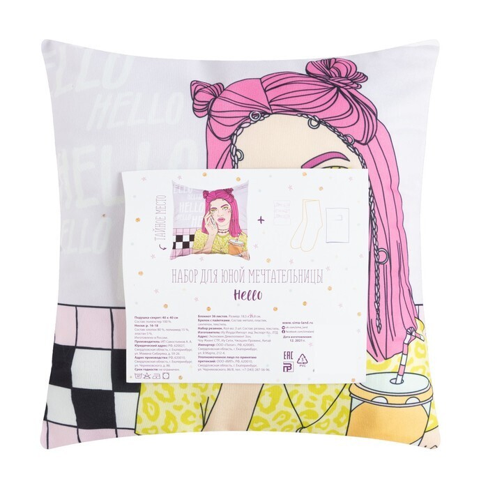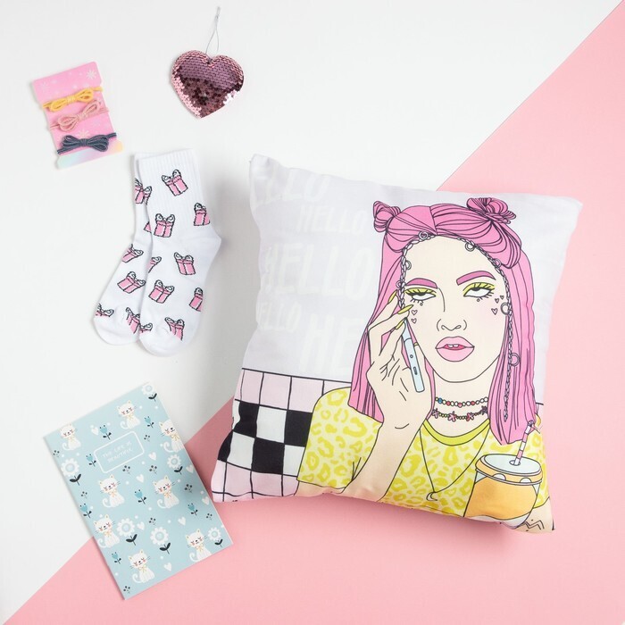 !09 Подарочный набор "Hello" подушка-секрет , 40х40 см и аксессуары