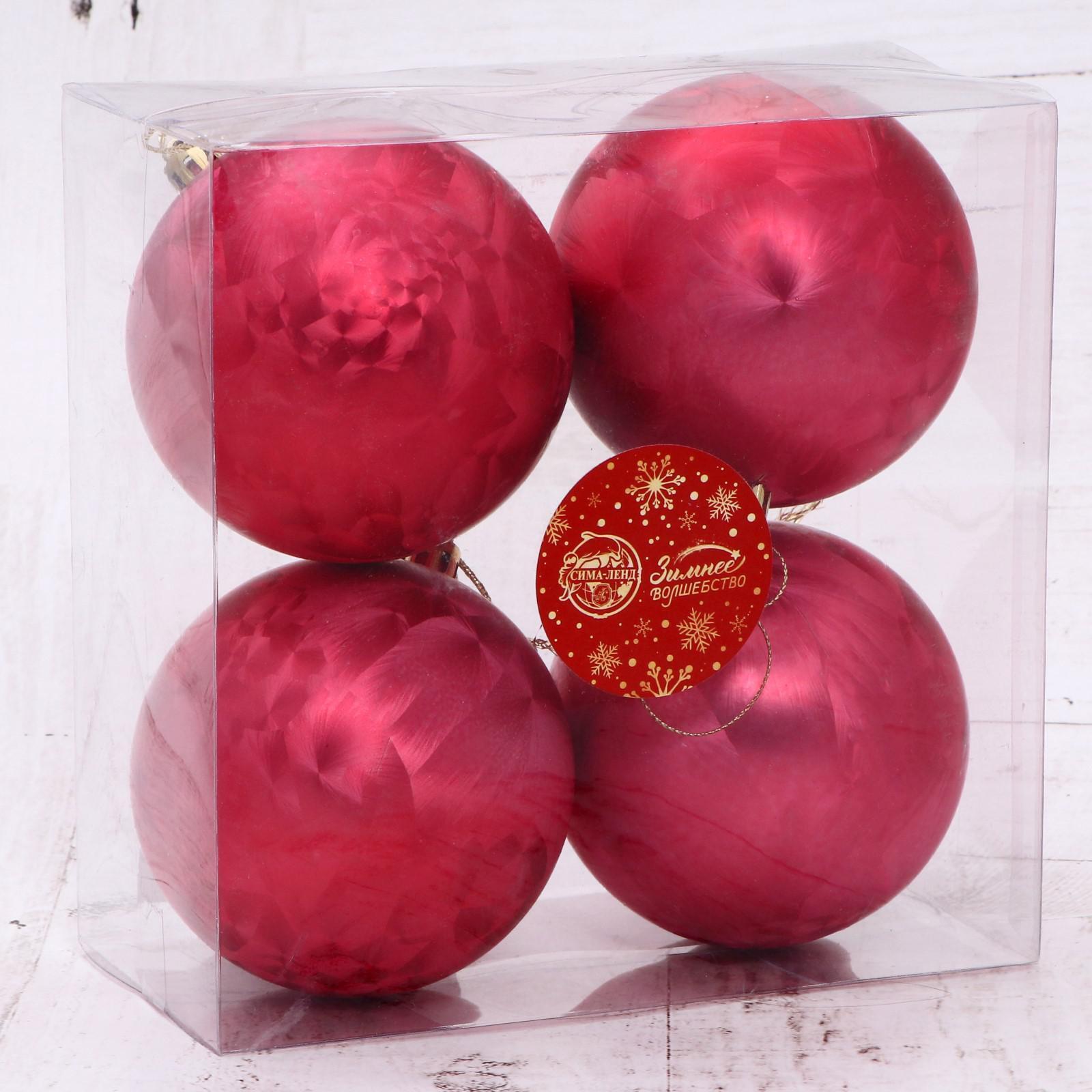 !09 Набор шаров 4 штуки пластик d-8 см. "Туман" цвет красный