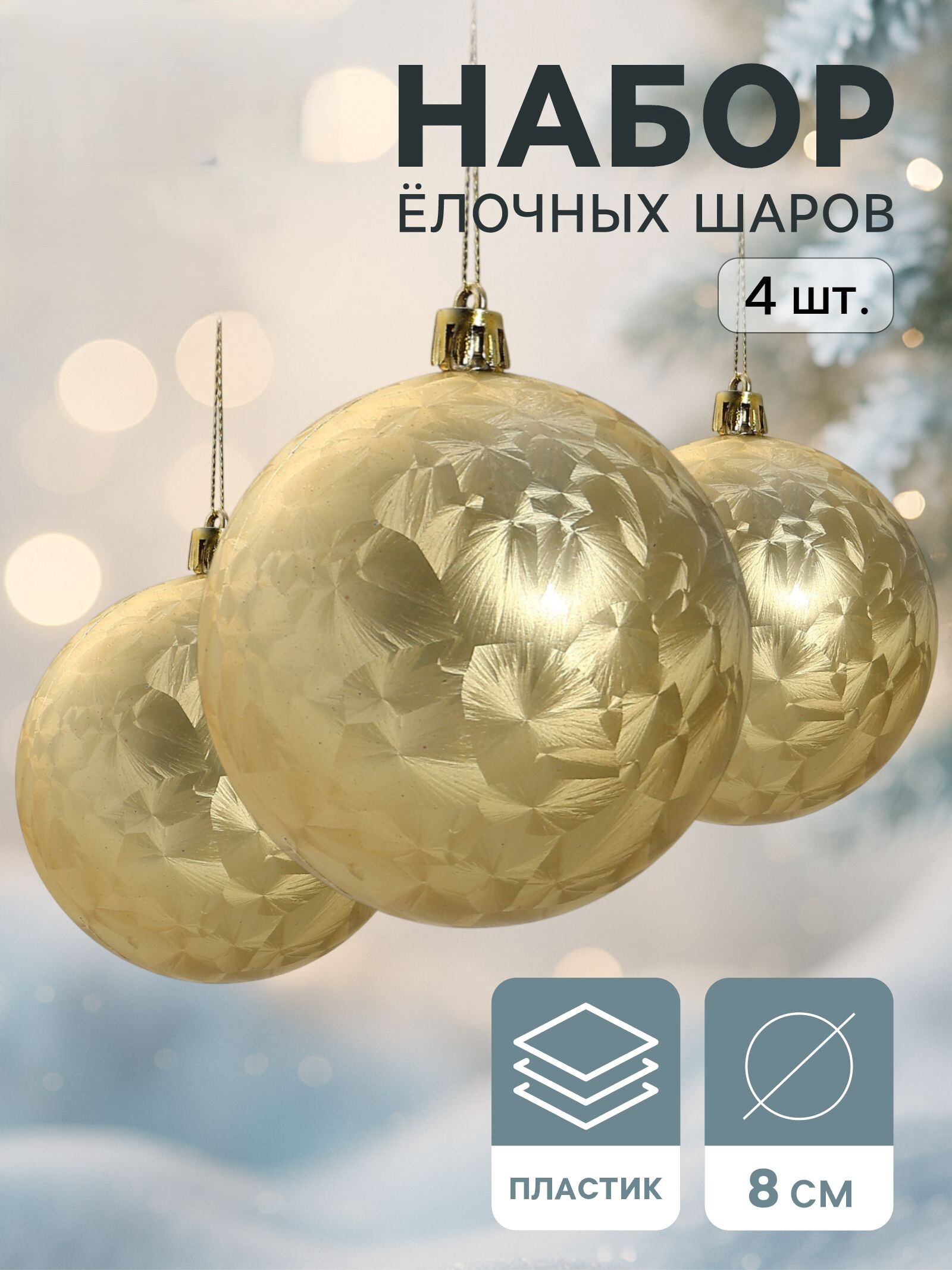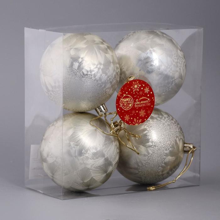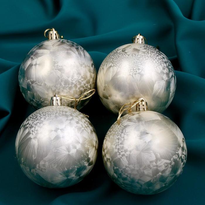 !09 Набор шаров 4 штуки пластик d-8 см."Туман", цвет золотистый