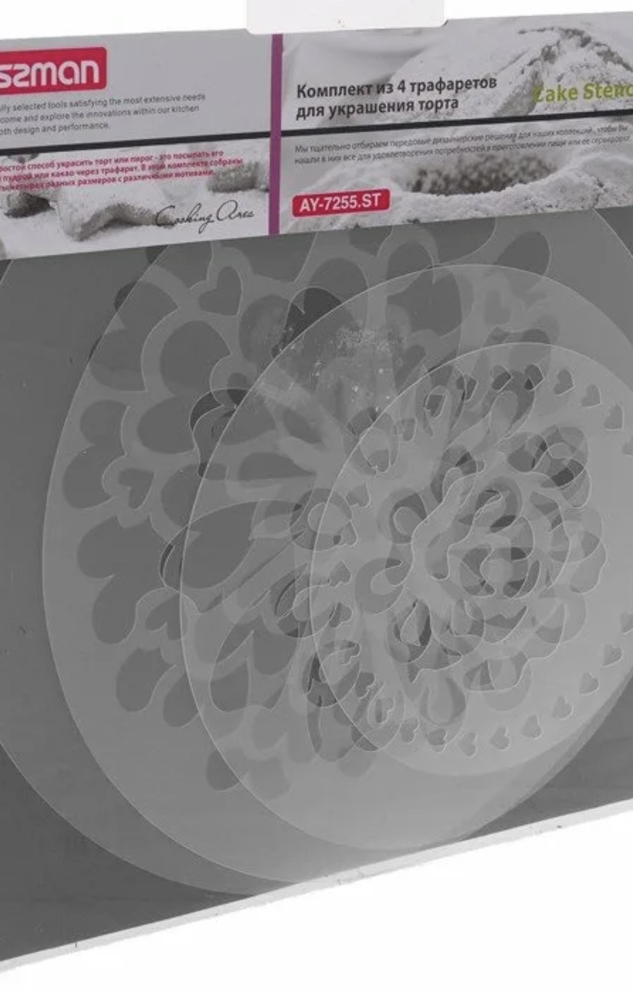 !09 Комплект из 4 трафаретов для украшения торта 15/20/25/28 см