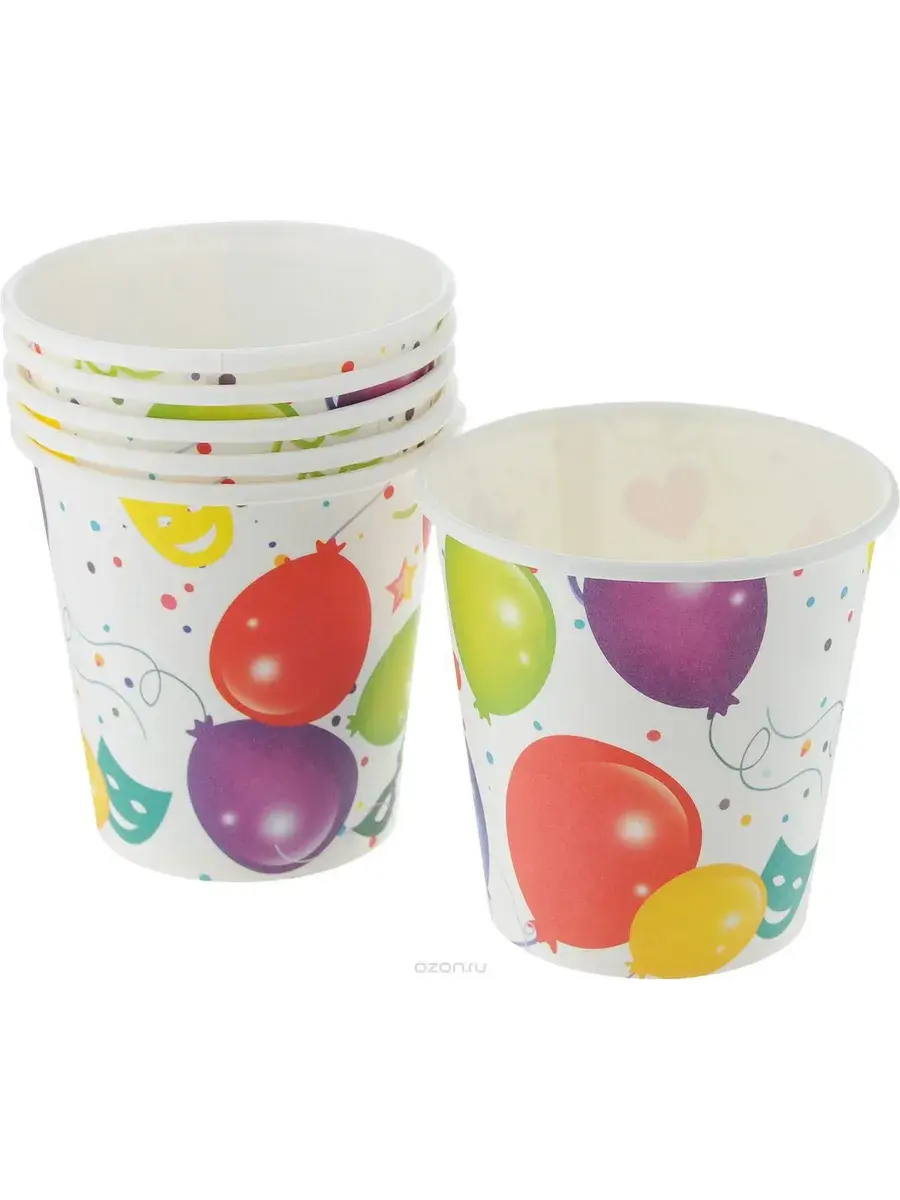 !09 Бумажные стаканы (наборы 12 штук) "ШАРИКИ" 250 мл.