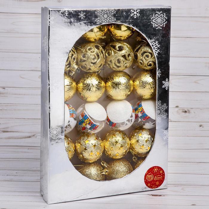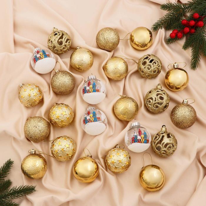 !09 Ёлочные игрушки «Зимний домик», шары новогодние, d=6 см, набор 24 шт., золотистый