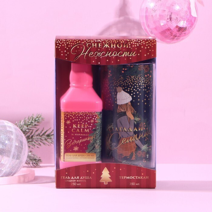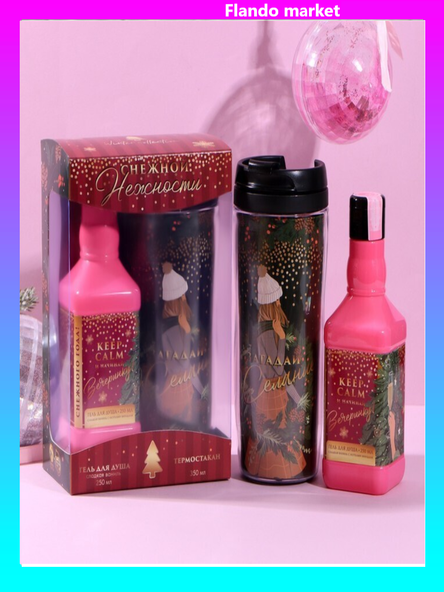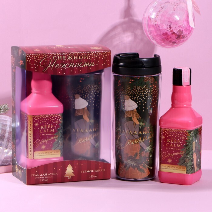 !09 Набор «Прекрасной тебе!»: гель для душа во флаконе виски 250мл, термостакан 350 мл