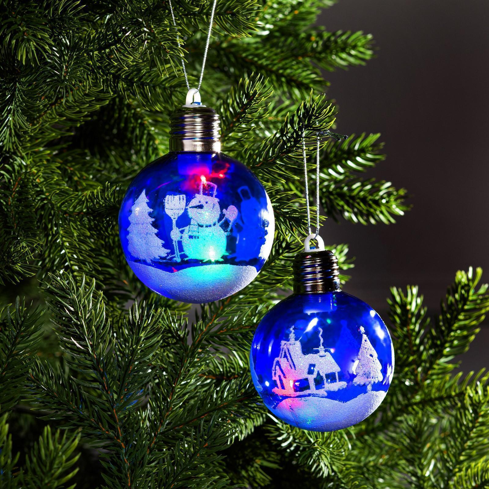 !09 Набор ёлочных шаров «Зимний пейзаж», 2 шт, d=8 см, 1 LED, от батареек, свечение RGB