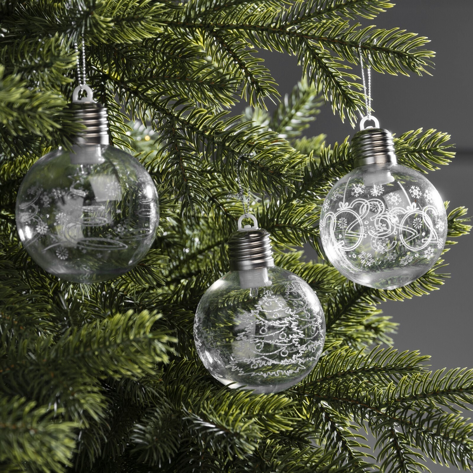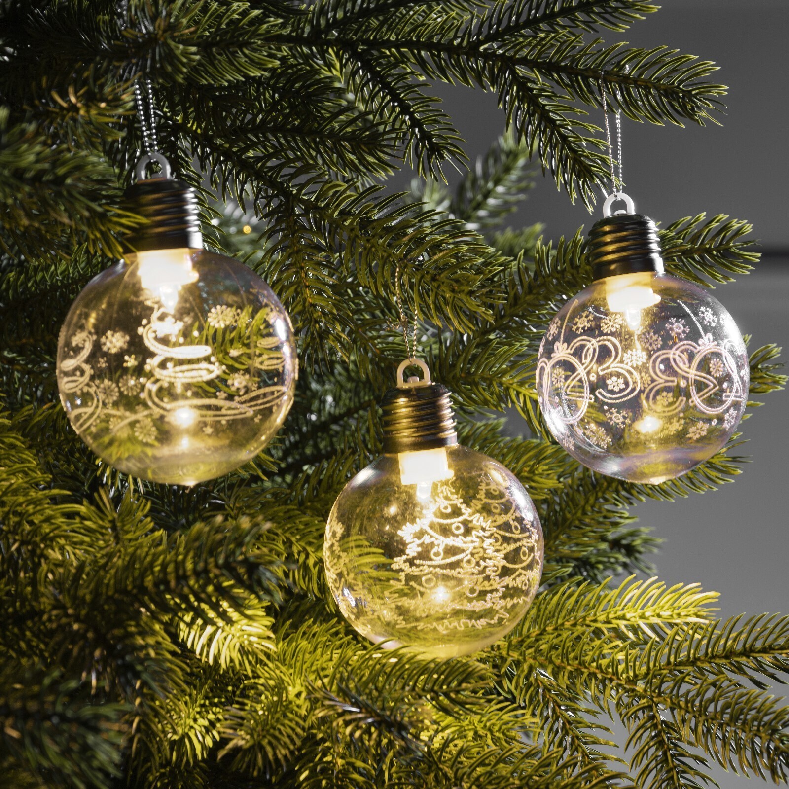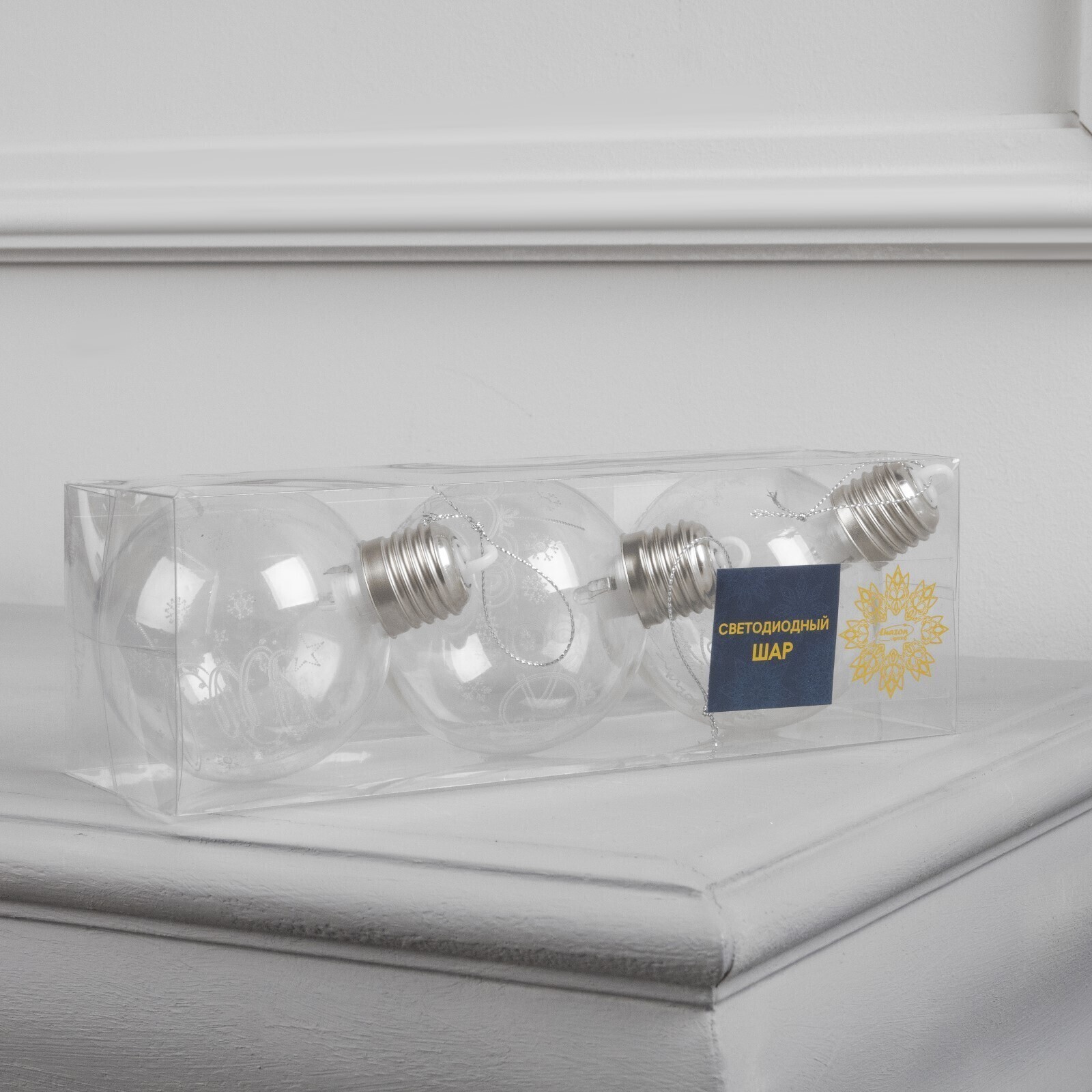 !09 Набор ёлочных шаров «Игра искр», 3 шт., 8×10 см, 1 LED, от батареек, свечение тёплое белое