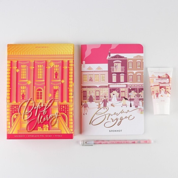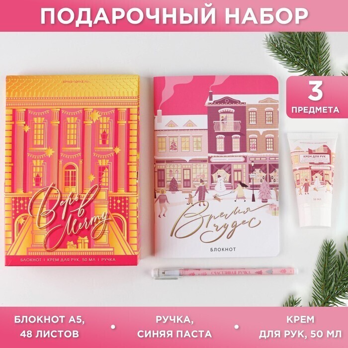 !09 Подарочный набор «Время чудес»: блокнот А5, 48 листов, ручка и крем для рук