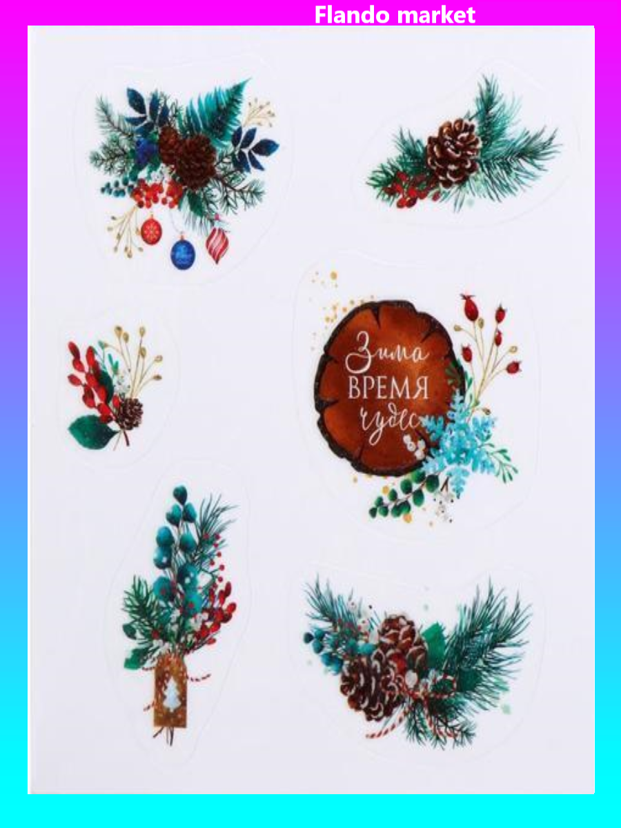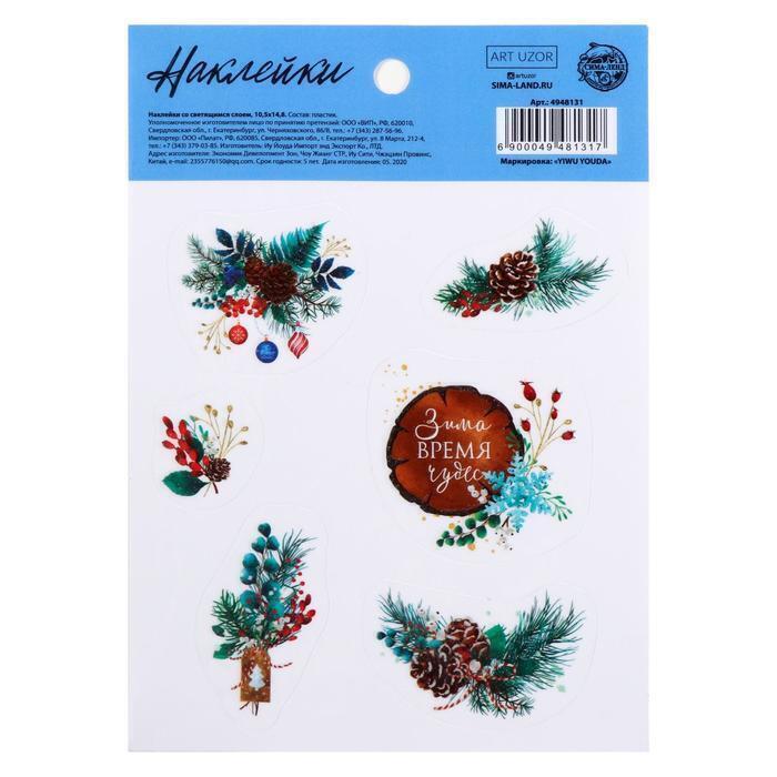!09 Наклейка (набор 3 штуки) со светящимся слоем «Природные композиции», 10,5 х 14,8 см.