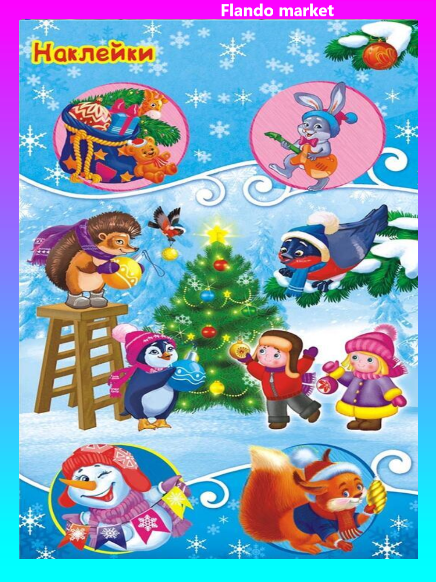 !09 Наклейки (набор 6 листов) детские бумажные «Встречаем Новый год», 9.7 х 16 см.