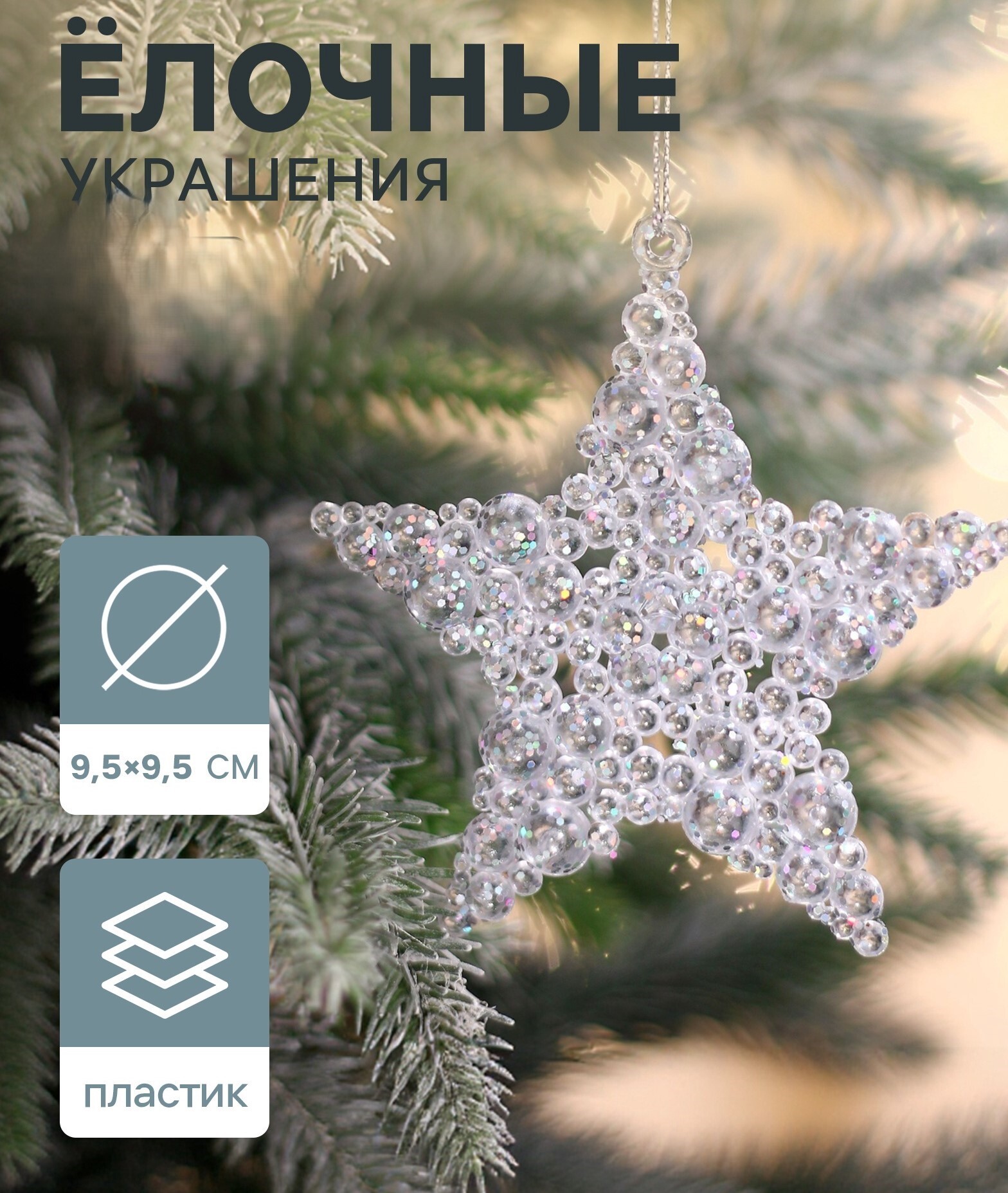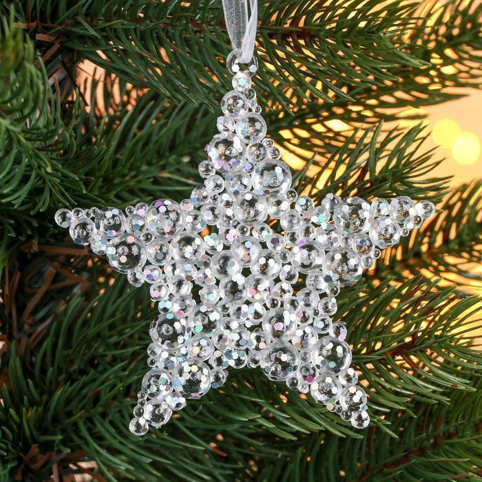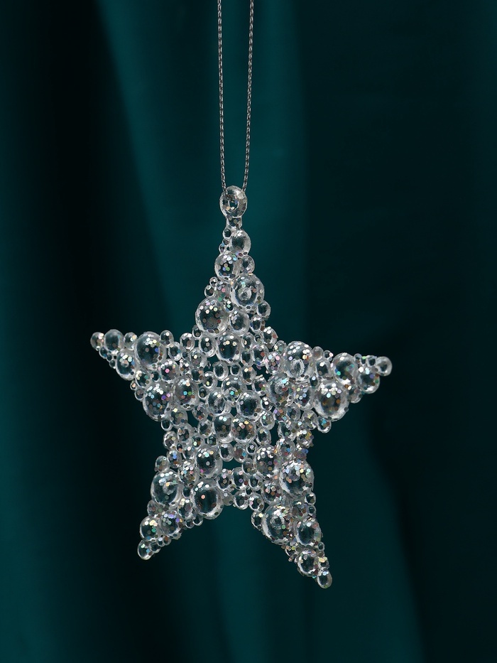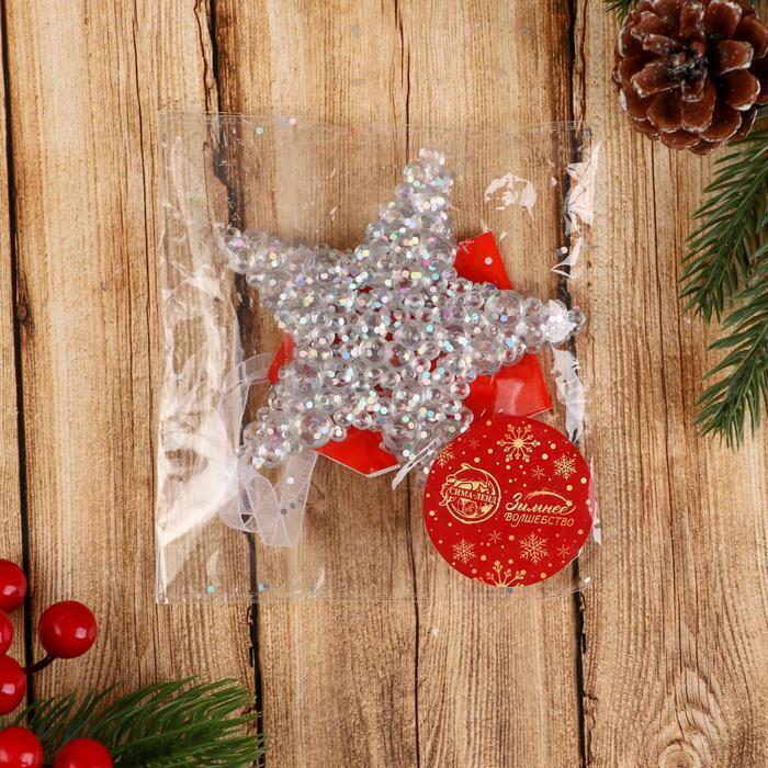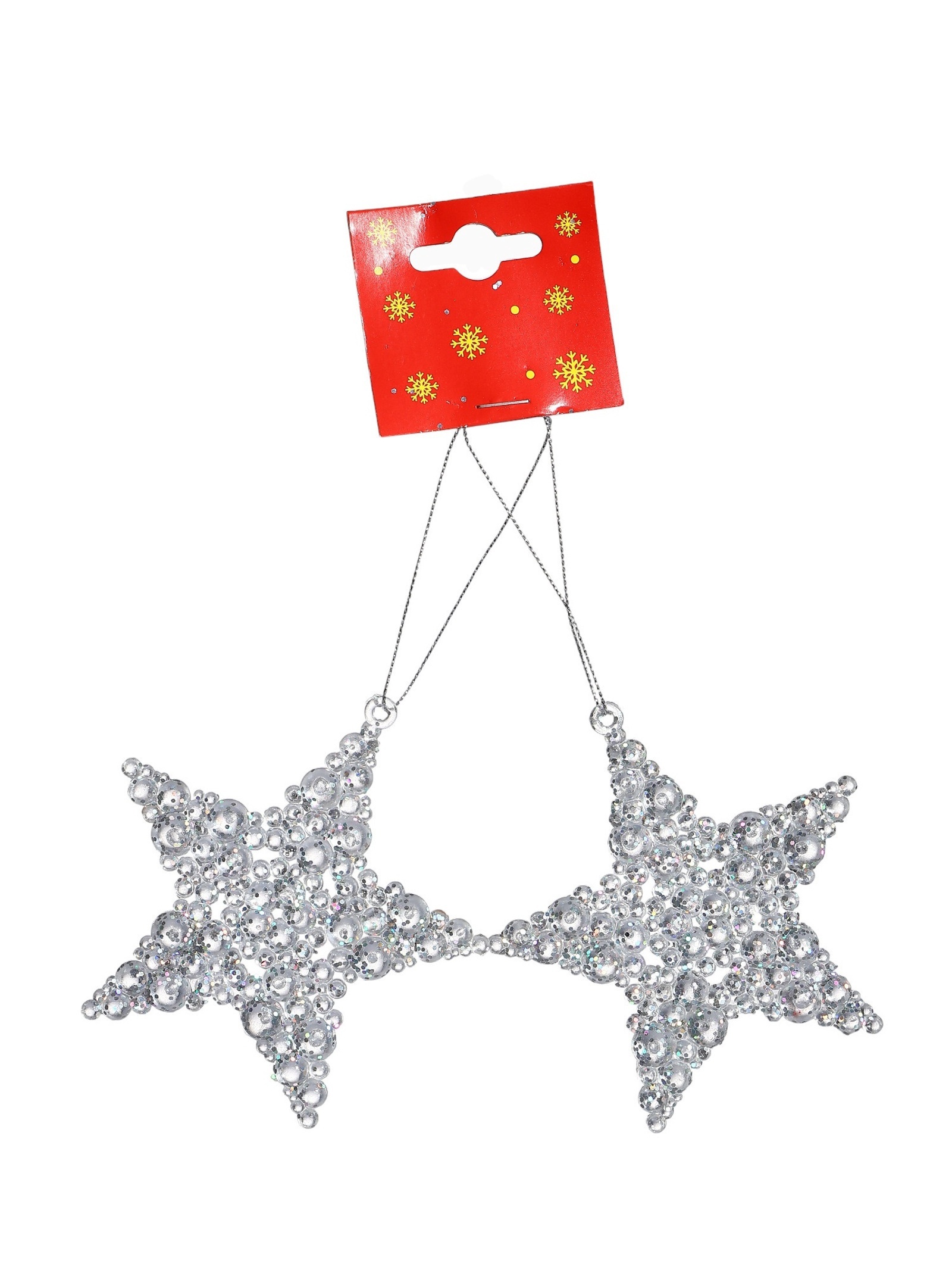 !09 Украшение ёлочное "Звезда - магия" (набор 4 шт) 9,5 см, цвет серебро