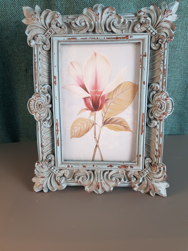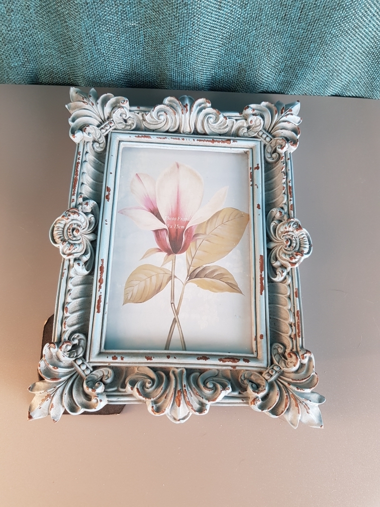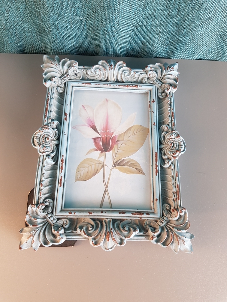 !09 Фоторамка пластик/стекло 10*15 см. состаренная цвет голубой