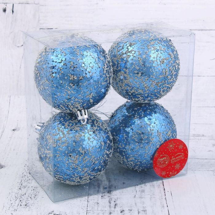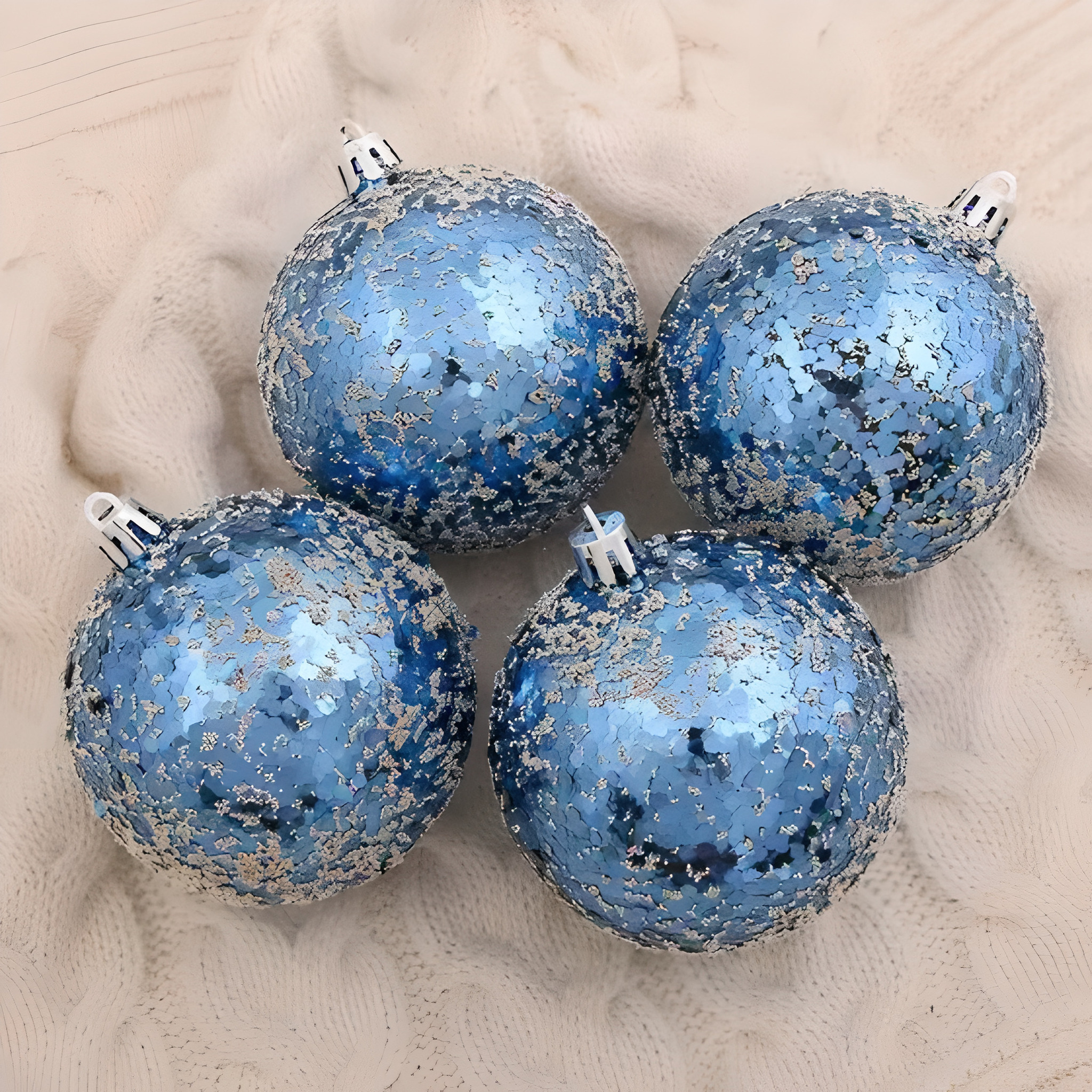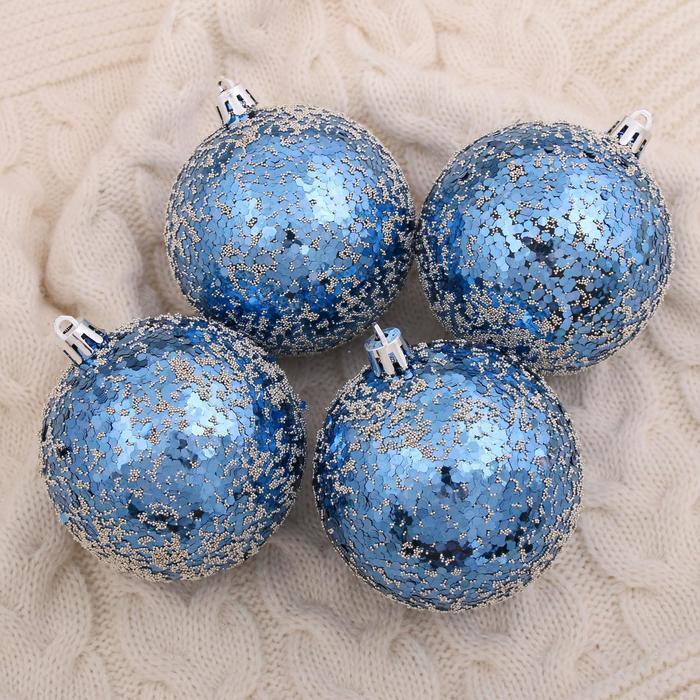 !09 Набор елочных шаров (набор 4 штуки) "Переливы конфетти" d-8 см,пластик, цвет синий