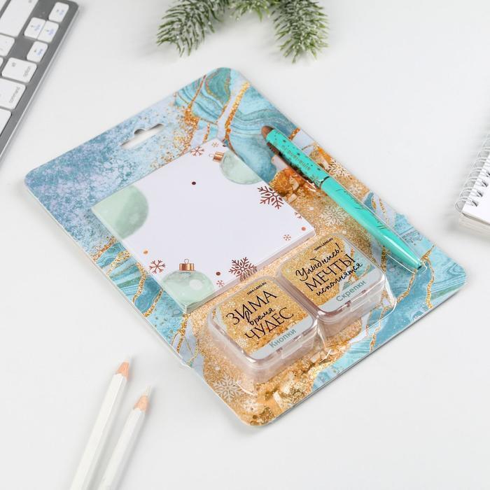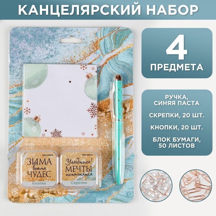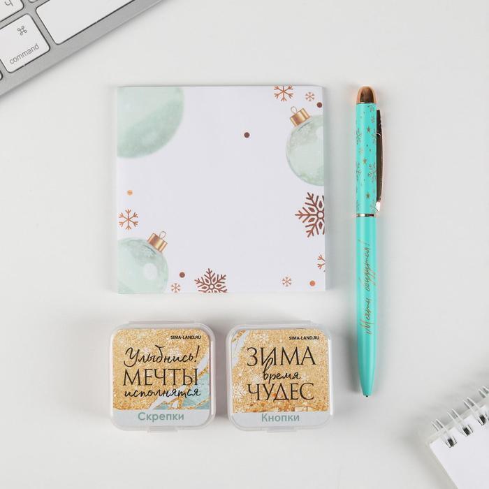!09 Набор «Сияй ярче этой зимой»: 50 листов, кнопки 20 шт, скрепки 20 шт, ручка металл