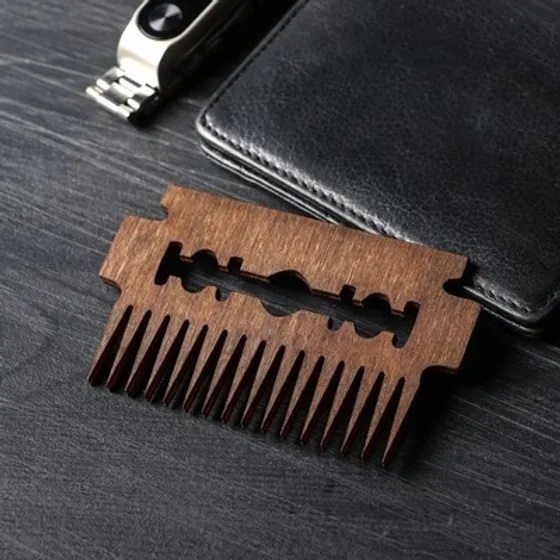 !09 Набор 23 февраля: Расческа для бороды «Бритва» 7,3 х 5,4 см. (1 штука) + Ароматизатор "Ты лучший из лучших" 100 мл. + Аналоги Значок «23 февраля», 5,6 см.(3 штуки)