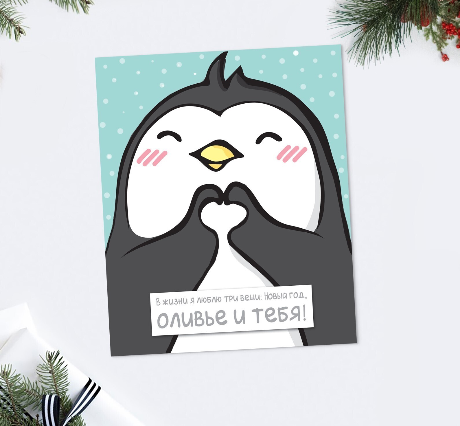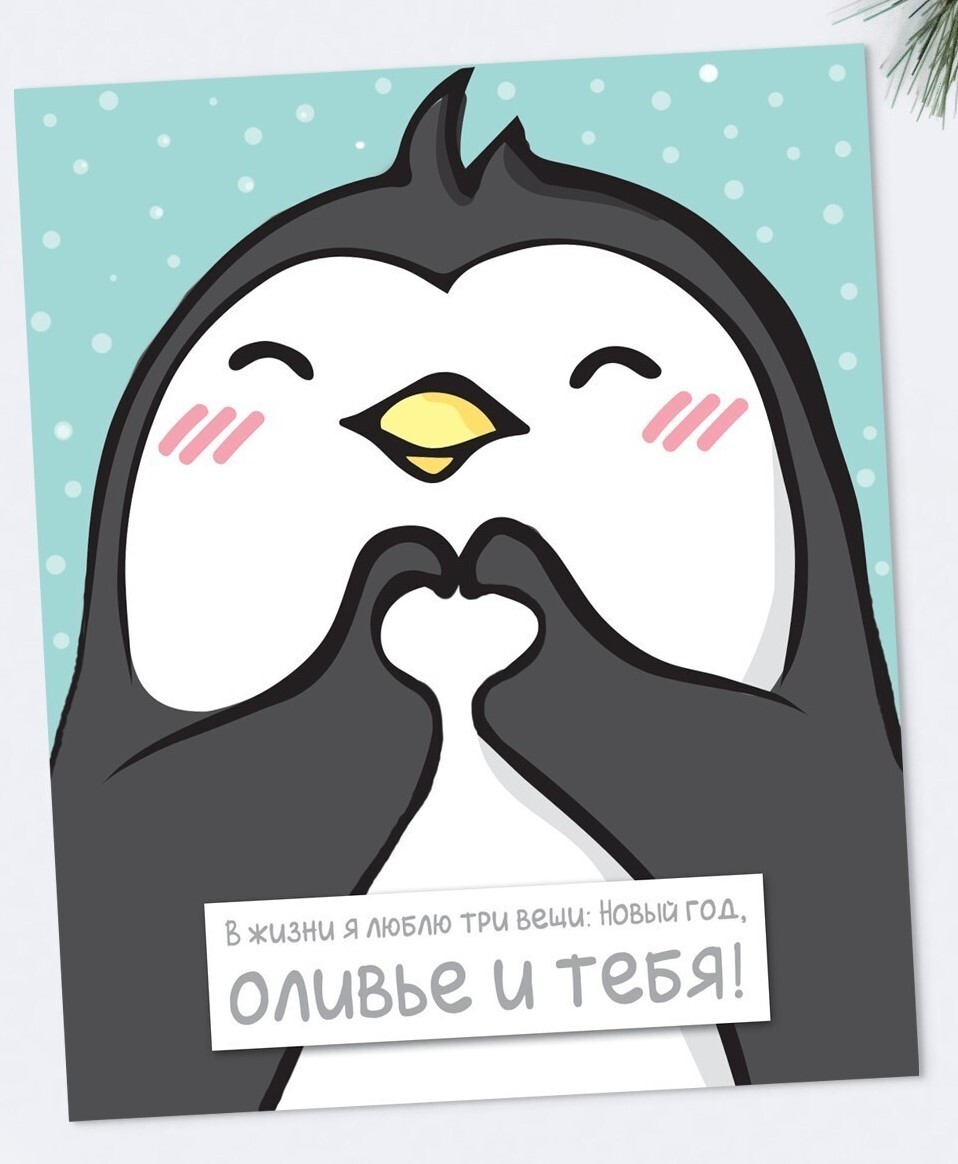 !09 Открытка-карточка (набор 10 штук) «С Новым годом!» пингвин, 8.8 х 10.7 см, Новый год