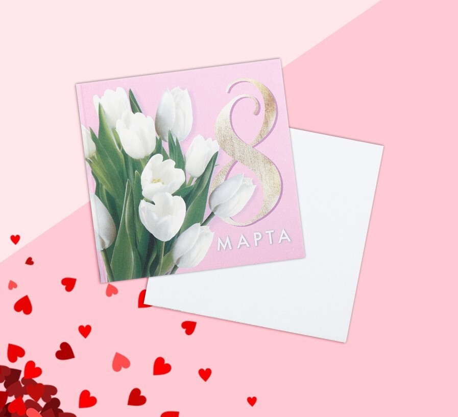 !09 Открытка-мини раскладывающая (набор 10 штук) «8 МАРТА» 7 × 7 см.