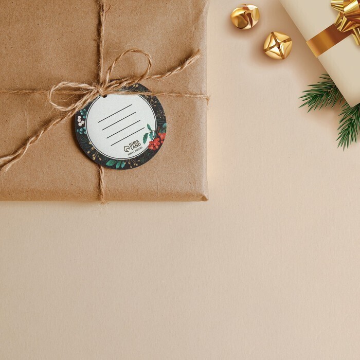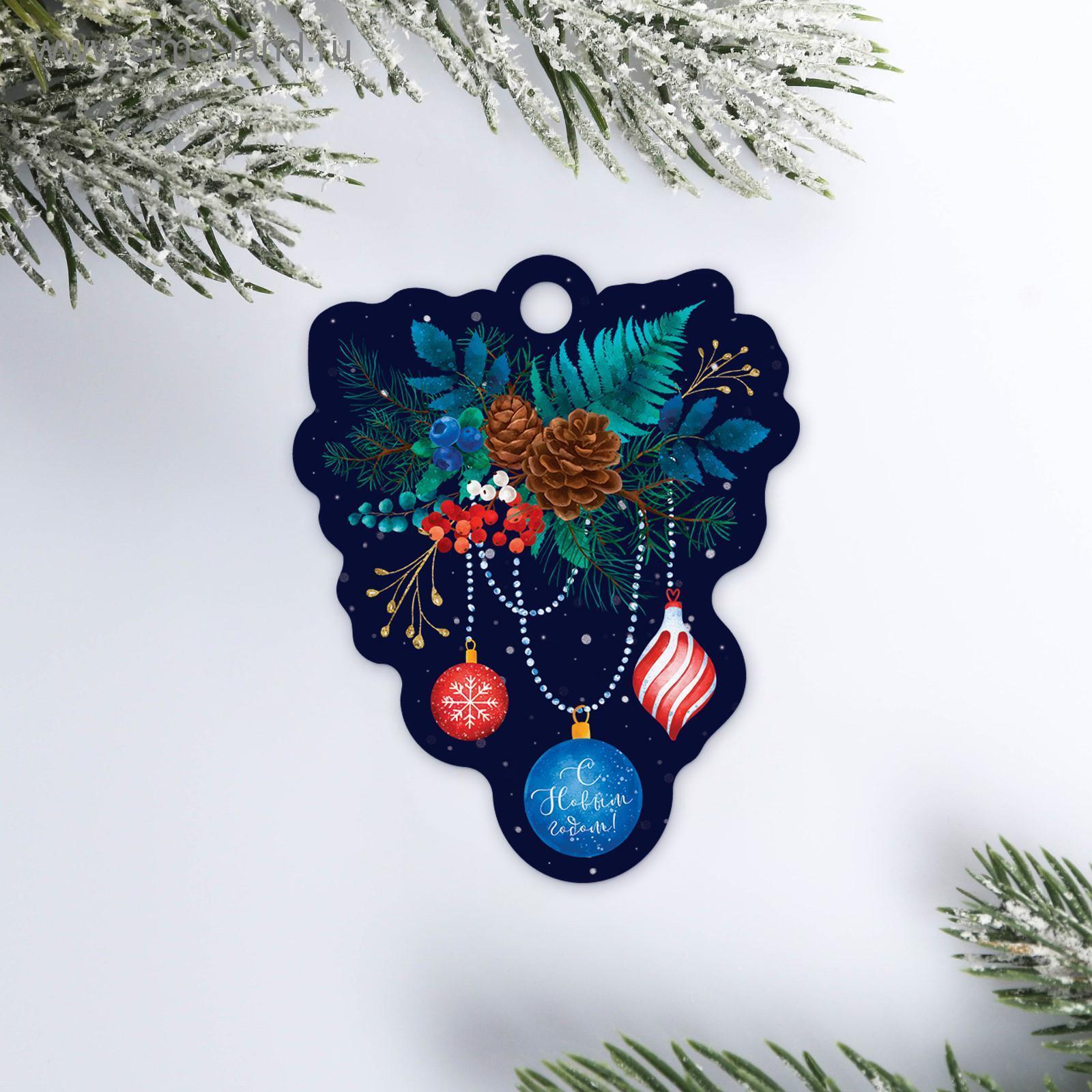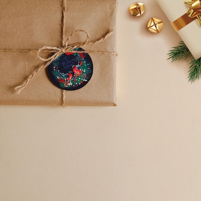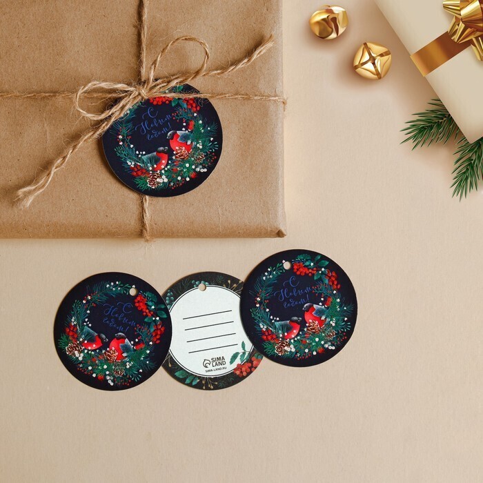 !09 Комплект из 10 шильдиков на подарок: Шильдик «С Новым Годом», 5 штук, 5,6 × 5,6 см. + Шильдик «Волшебный венок», 5 штук, 5,1 × 6,3 см.