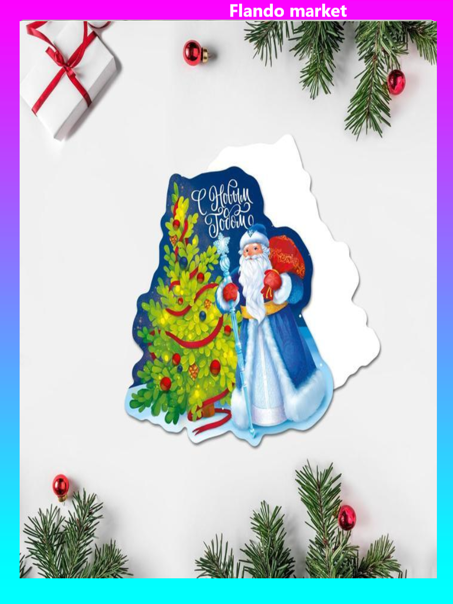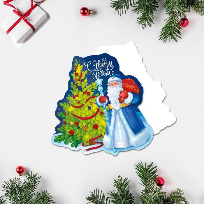 !09 Открытка под конфету (набор 7 штук) «С Новым Годом!» Дед мороз и ель, 9 × 9 см.
