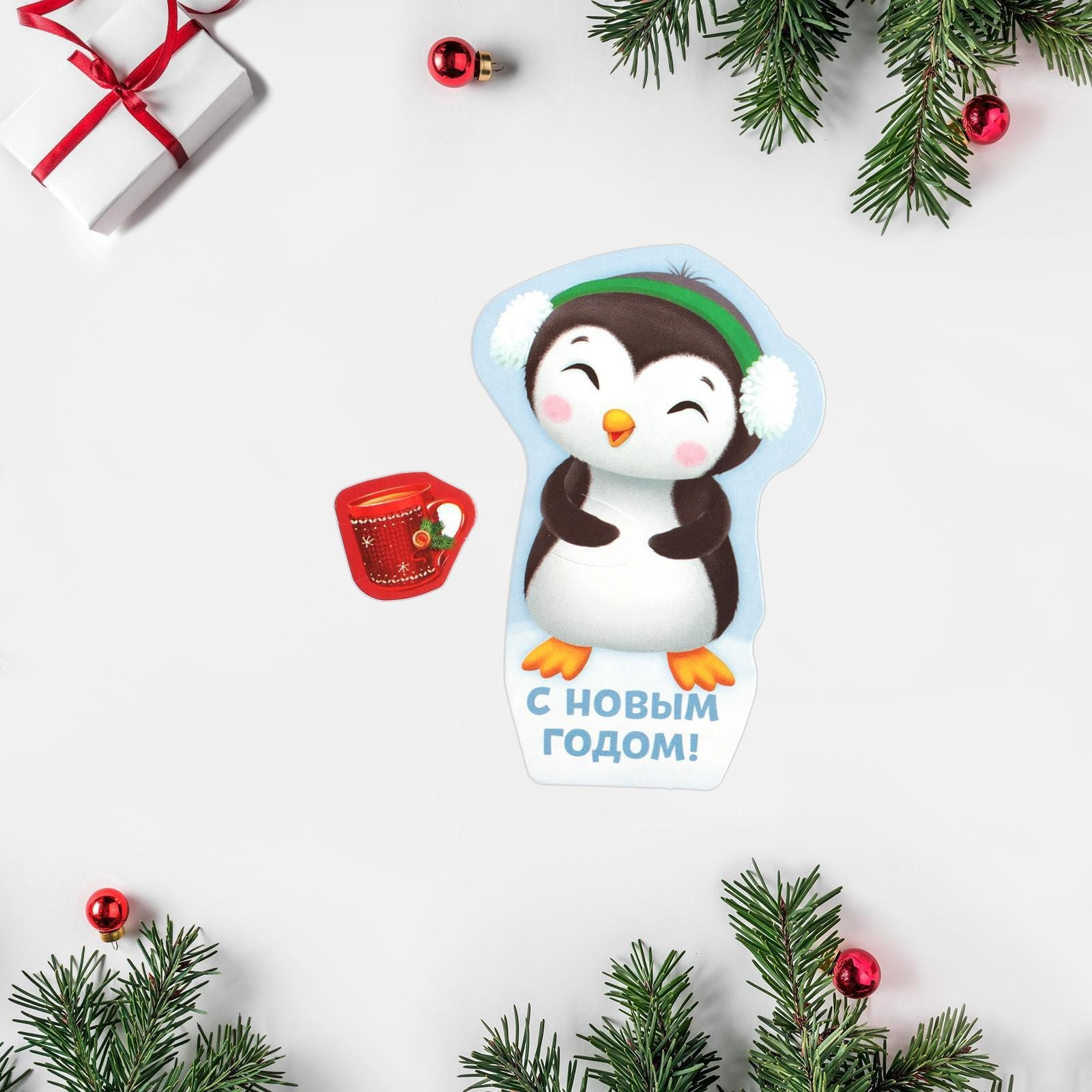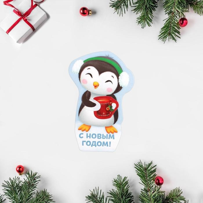 !09 Открытка поздравительная (набор 9 штук) «С Новым Годом!» пингвин, 6 × 9 см.
